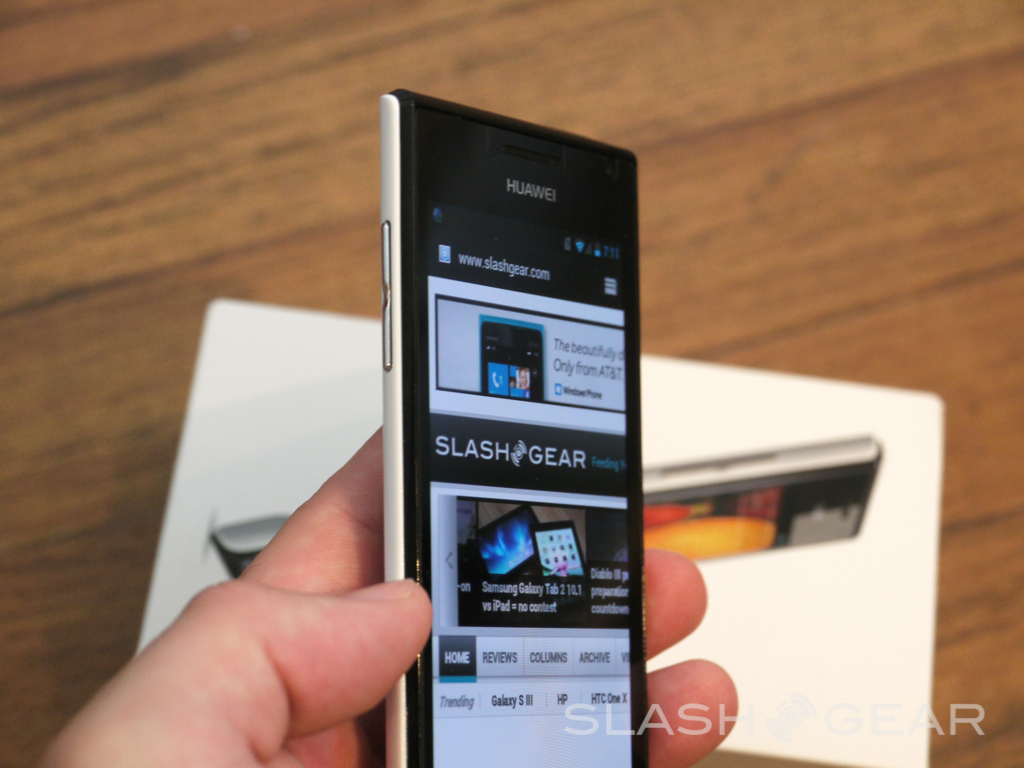 Huawei's equipped this new phone with a large and vibrant 4.3-inch qHD 540x960 AMOLED display, a 1.5 GHz dual-core TI OMAP4460 processor, 1GB of RAM and 4GB of internal storage. The initial specs don't match that of the Galaxy S III or the HTC One X, but it comes to market with Android 4.0 Ice Cream Sandwich, and an impressive hardware design to keep the others at bay.