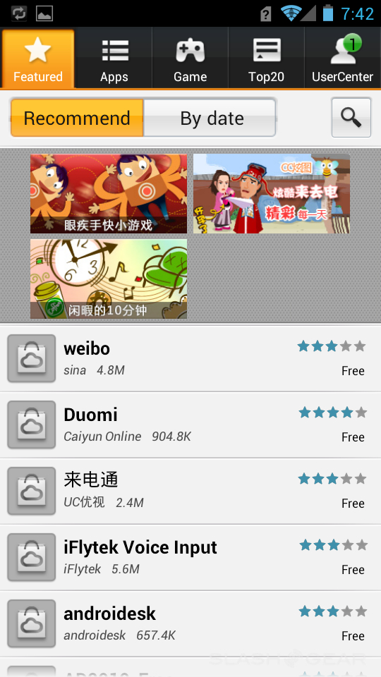 In general the software performed just as you'd expect on a powerful dual-core processor. Everything was smooth and swift, and the 3D animations worked great even though we don't have a 3D display. All the Ice Cream Sandwich effects and cyan blue colors pop with the AMOLED display too. Since being installed for the Chinese markets, the phone did have Mobile QQ, as well as HiSpace mobile app store. They have a pretty limited selection and nothing looked familiar for someone like myself, and I wasn't even able to find Angry Birds – Sadness. Many of the menus were difficult to navigate considering I don't speak or read Chinese, but again that won't be a problem for the European models.