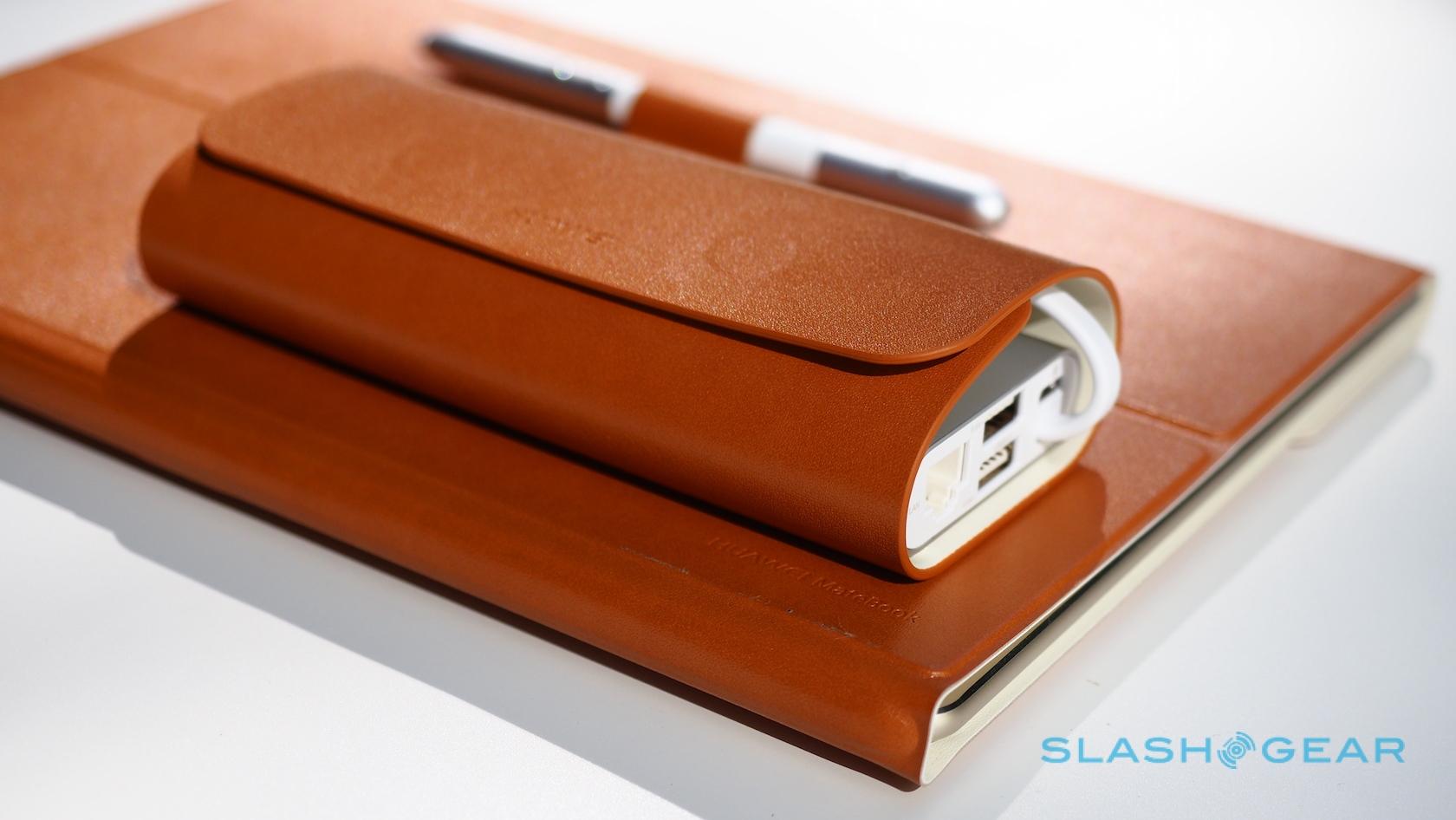 Even better is Huawei's USB-C MateDock. It'll set you back an extra $89, yes, but it gets you two USB 3.0 ports, ethernet, HDMI, and VGA, along with pass-through USB-C power. It magnetically clings to a neat little leather case, within which there are useful spaces for the USB-C to microUSB cable and USB-A dongle that come with the MateBook itself.