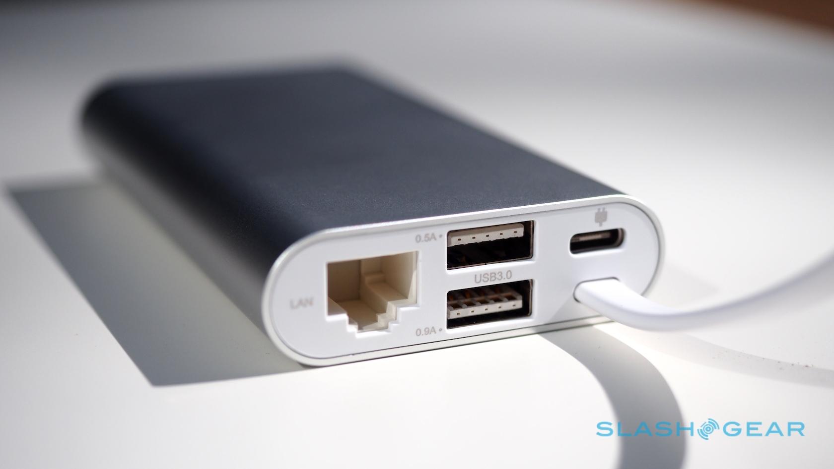 So, as well as a USB-C power adapter and a USB-C cable for power and data, you also get a short USB-C to microUSB cable in the box, plus a microUSB to USB-A dongle. That way, you can still charge and sync your phone or plug in USB memory sticks, without coughing up extra for adapters. Yes, Apple, I'm looking at you and the Retina MacBook.