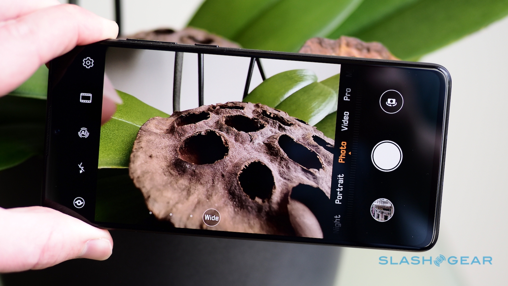 A 20-megapixel ultra wide angle lens replaces the P20 Pro's monochrome sensor. It also doubles as a macro camera, capable of a 2.5 centimeter minimum focus. Underneath there's time of flight sensor, which accurately measures the depth of the scene for more realistic background defocus.