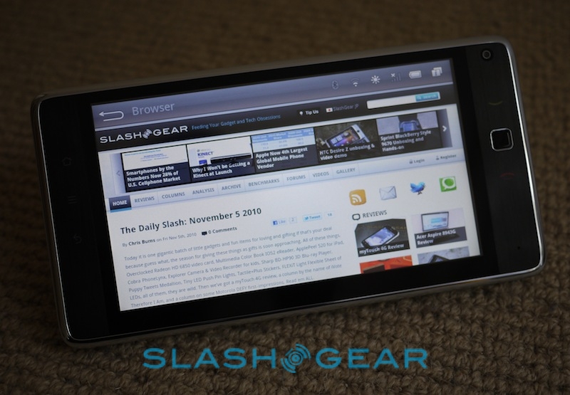 What you do find is that the amount of pressure needed on a resistive panel is significantly higher than for a capacitive screen, and that can make for tiring or sluggish-feeling use. There's no multitouch, either, so zooming in the browser requires you either hit the zoom buttons at the bottom of the display, or double-tap on text. We had mixed results with the text reflowing, too; sometimes a double-tap would resize paragraphs to take advantage of the full screen, other times not.