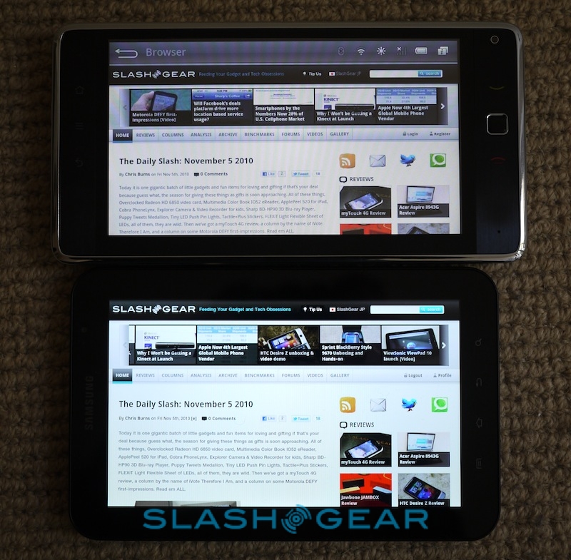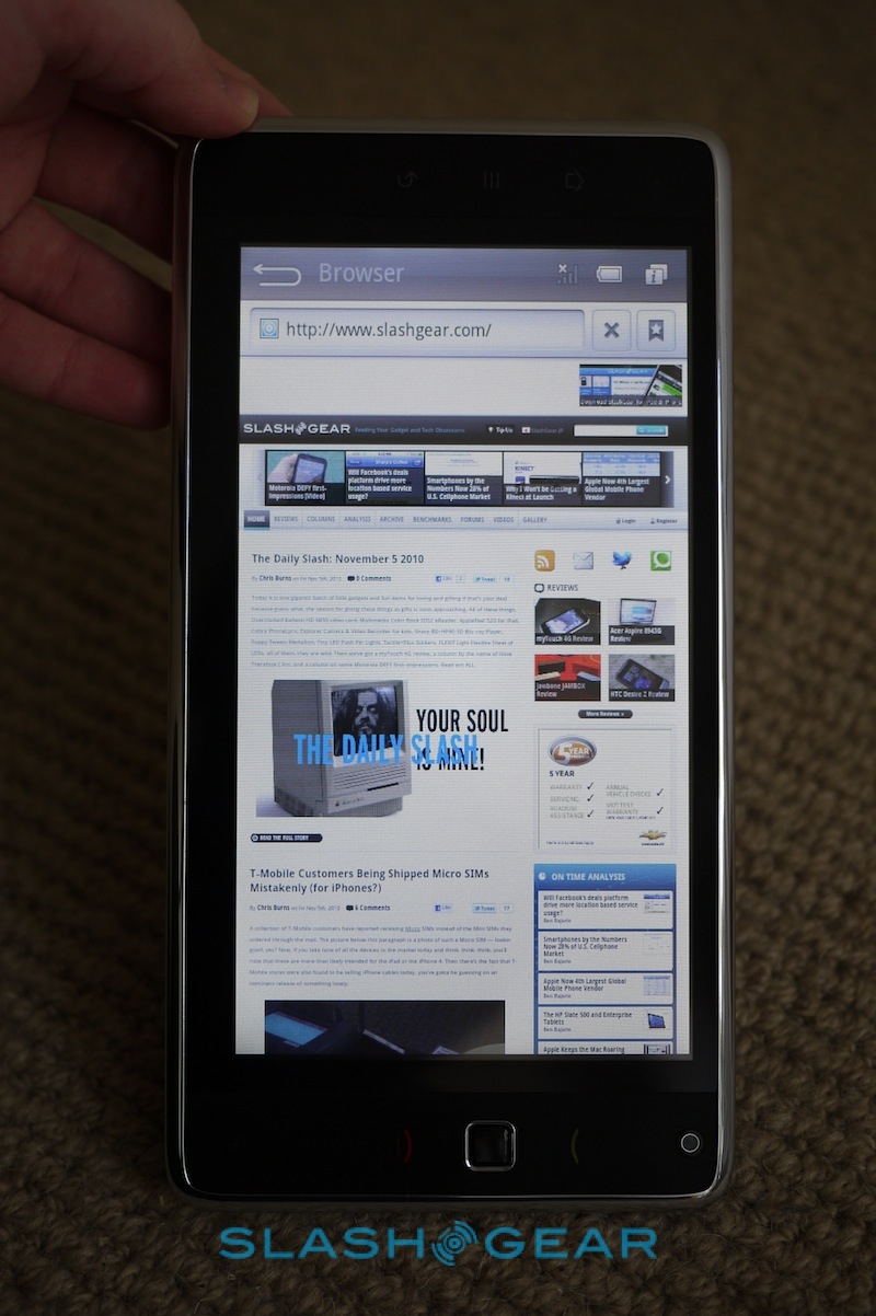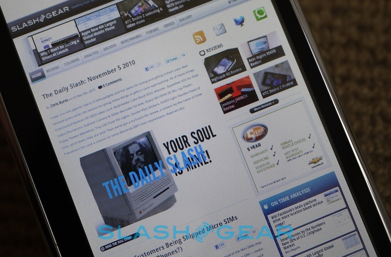 There's no Flash Player 10.1 support, and Huawei hasn't said anything about a Froyo update or, indeed, transitioning the S7 to any later version of Android. Still, the browser renders quickly, though we couldn't see as much on-screen at at time as on the higher-resolution Tab. It was only during browsing that the WVGA resolution really made itself known, with blocky text when zoomed out; usable, certainly, but you're not getting any more pixels than on a regular Android handset.