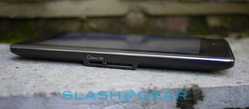 Under the battery cover is a SIM card slot for the S7's quadband GSM/EDGE, quadband UMTS/HSDPA (850/900/1900/2100) modem. Other wireless options are WiFi b/g/n and Bluetooth 2.1+EDR, while the USB port will function as an OTG Host for plugging in peripherals. Huawei haven't loaded a 3G hotspot app, however. There's both an accelerometer for automatic screen rotation and a light sensor, though we found the brightness only really seemed to respond to Huawei's custom control on the homescreen. As for the battery, that's a 2,200 mAh Li-Ion pack – considerably smaller than the Tab's 4,000 mAh – which Huawei reckon is good for up to four hours of use. We couldn't get the S7 to charge via the microUSB port, only from the dedicated AC adapter.