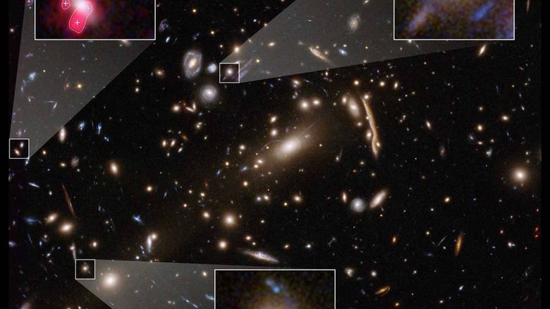 The researcher says that this could signal a gap in the current understanding of the nature of dark matter and its properties. Gravitational lensing is an interesting phenomenon that distorts distant background objects like a funhouse mirror. The distortions can sometimes produce multiple images of the same distant galaxy. The higher the concentration of dark matter in a cluster, the more dramatic the light bending. The image above shows dozens of multiply imaged, lensed, background galaxies.