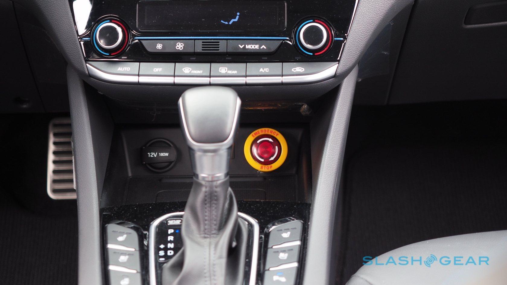 According to Nevada licensing law, Hyundai must have a registered driver behind the wheel, ready to take over at all times should the autonomous system disengage. Once that driver had pulled us out of the parking lot and onto the road, however, a quick stab of a button on the steering wheel saw the computers take over. A sizable "EMERGENCY STOP" button caught my eye in the center console, presumably a last-resort.