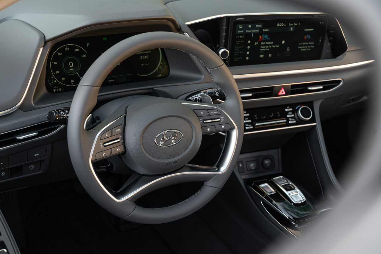 The tires measure 245/40 R19 and promise performance, responsive handling, and durability. They also promise traction in light snow. The Sonata SEL, SEL Plus, and Limited trims all gain Safe Exit Warning. That feature leverages the existing blight-spot radar sensors to warn the driver and passengers if oncoming traffic is detected when parallel parked.