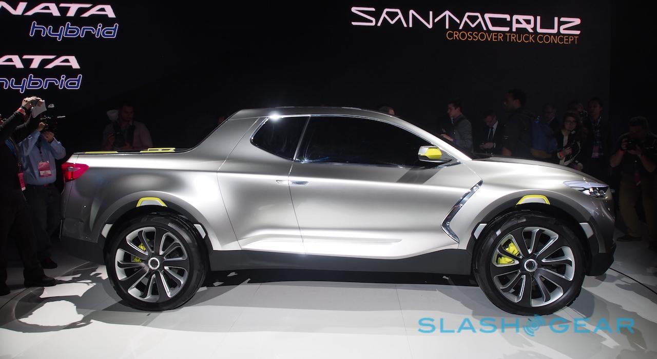 It's the El Camino for the crossover generation, with Hyundai's moon buggy styled Santa Cruz concept sating what the company insists is a lingering appetite for pick-ups among Millennials. Truck sales among younger buyers may be fading, Hyundai said during its Detroit Auto Show event, but that's an opportunity not a hinderance, it insisted. The result is a "Crossover Truck Concept" that seats five and offers a fairly capacious load area, all in a footprint more commonly associated with a moderately sized sedan.