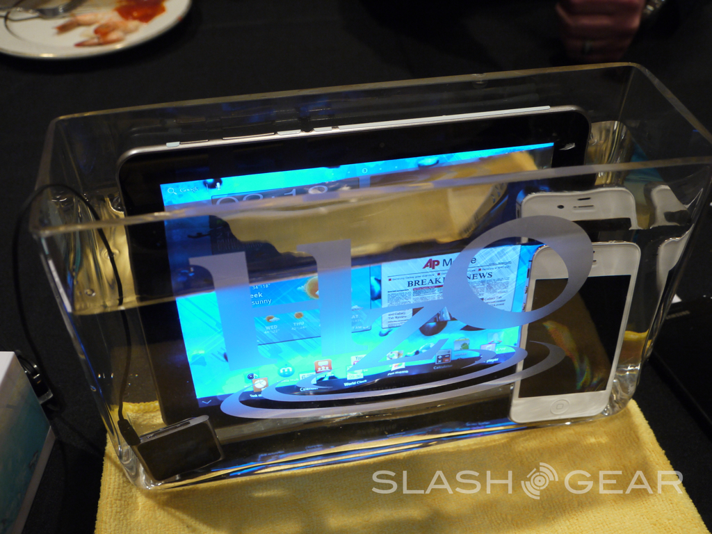 Live here in New Orleans for CTIA 2012 we had just started checking out the mobile goods when we spotted the HzO Waterblock booth. We've mentioned them in the past, but their hydrophobic waterproofing technique for smartphones and tablets is unlike anything else currently available, and said to be coming to Samsung and Apple devices soon.