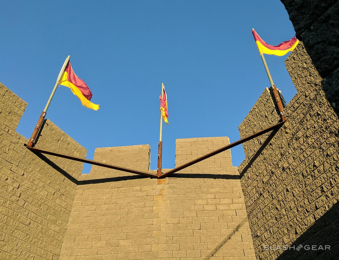 The Google Pixel XL did not fail us as the sun inched out of sight. We decided to heed the signs which suggested a new restaurant was open inside the Enchanted Castle, and entered. To one side, a front desk with a morning star affixed to the wall – to the other, a set of... armor.