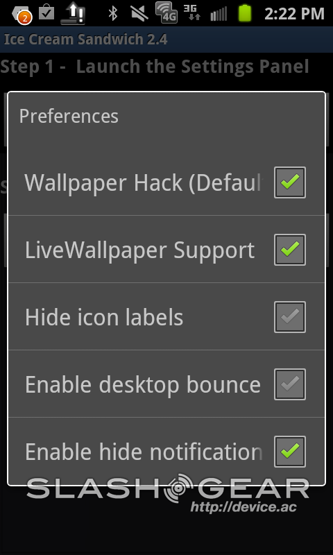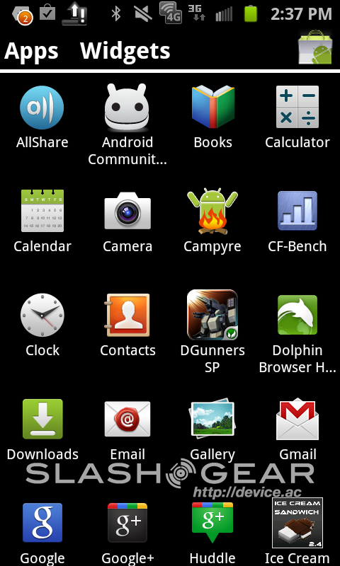 You can download the Alpha version 1 of this application here at your own risk: ICS_2.4_Launcher.apk and open and install as you would any other third-party app not sold on the Android Market. Remember over and over again that this is unofficial, alpha in its version, and is largely untested. You'll find bugs and broken bits galore, all of this set to be fixed in future versions of the app. We've only tested it on the GSII and it's worked pretty well with the bugs I speak about in the video.