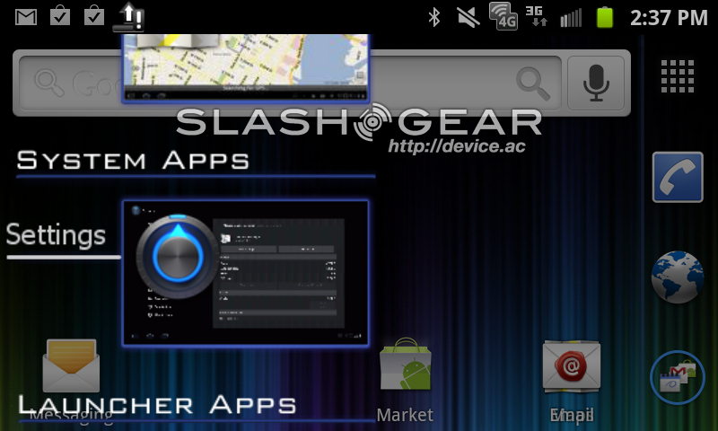 This launcher is built off of Syndicate Apps' Honeycomb launcher, which may make you feel like you're in a tiny, tiny tablet. But what you'll be able to see is the closest to reality version of Ice Cream Sandwich, again in its scientifically hypothesized state, that we've seen thus far. Have a look at the screenshots below, the video in this post, and note that it's all done here on our brand new Samsung Galaxy S II Epic 4G Touch smartphone, a device which you can get a full review of by heading to Vincent Nguyen's post from early last week.