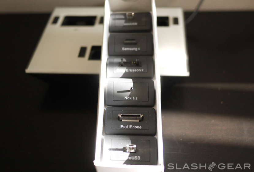 Well would you look at that, it's a charging station and we're taking a look at it. This is a station for charging up to 4 devices (three on the top and another via the USB bonus port on the side.) This device is currently available via IDAPT and it'll set you back $59.99. It's got interchangeable tips that plug into the dock creating a system which IDAPT notes provides a charging opportunity for over 4,000 devices. This certainly reduces the number of cords you've got popping out of your outlet – but what if all you've got are Android devices? Let's take a look.