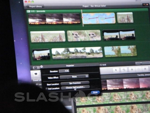 iPhoto has a vast database of thousands of well known locations. There is also integrated Facebook and Flickr support, to export all that location and person data. Also there are new themes for showing your photos with all new matching music. One amazing addition is the travel book system, which will group photos based on the location in which they were taken. iMovie also got a bit of tweaking. Users can now edit