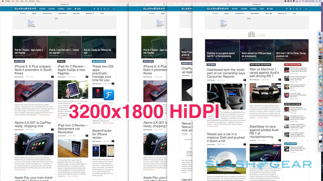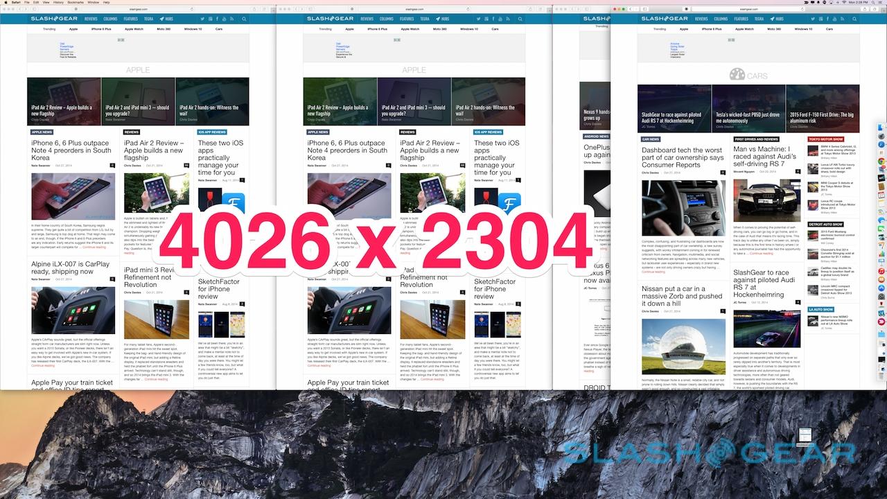 Instead, Apple had to create a few key parts from scratch. The timing controller (or TCON) is a good example, weaving together the signals from two DisplayPort 1.2 pipelines for up to 40 Gbps of bandwidth. Denser pixels means the backlighting needs to be more capable, too, and so Apple switched to new, higher-efficiency LEDs which not only mean no shortfall in light, but power consumption has in fact dropped by 30-percent.