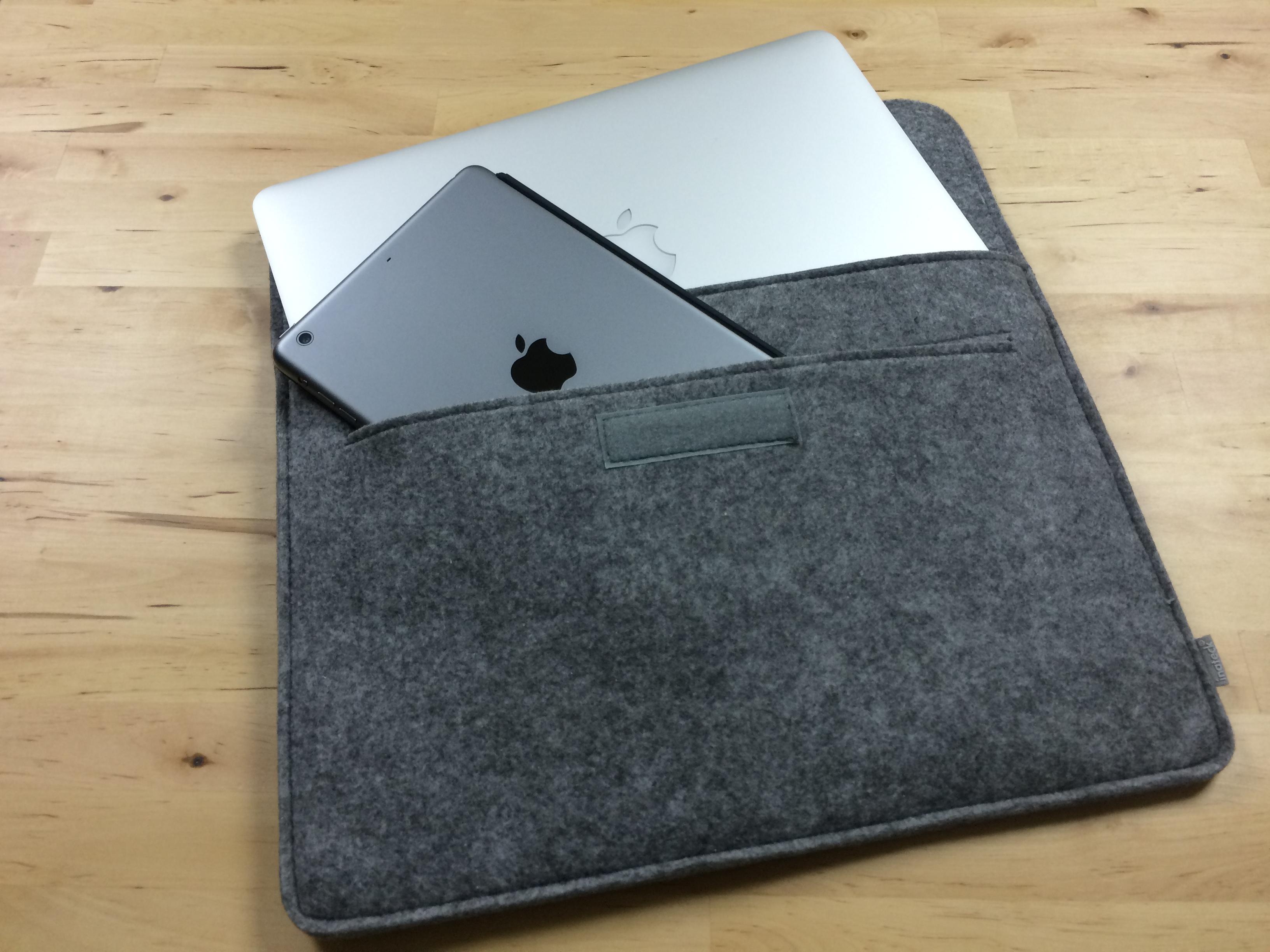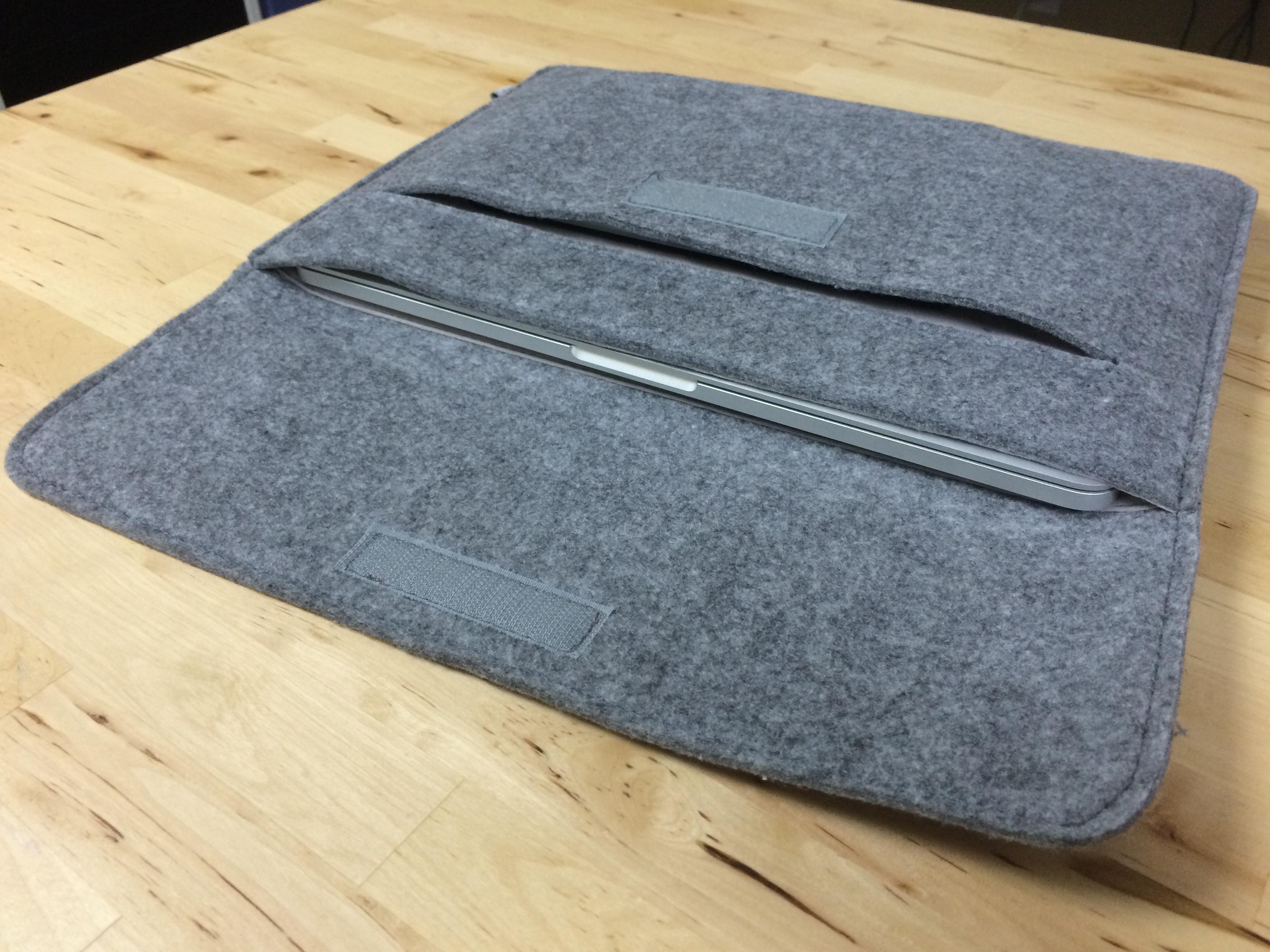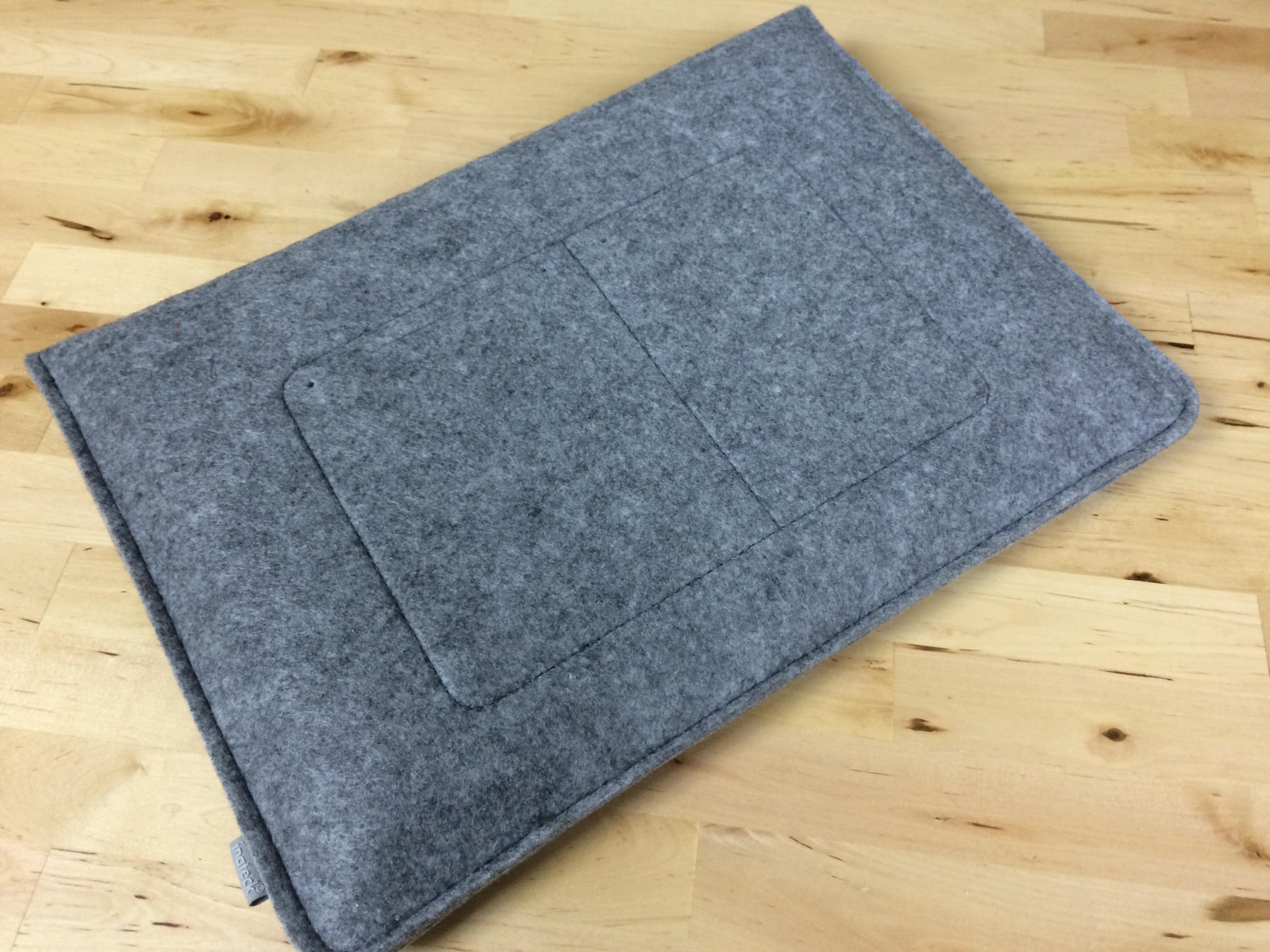The case is made of a very nice felted material, broken up only by the leather tab marker and stitching. If you like the "sleeve" look for a — well, sleeve — this is it. The Inateck Macbook sleeve is very business-casual in appearance, and adds minimal weight or bulk to your travels.