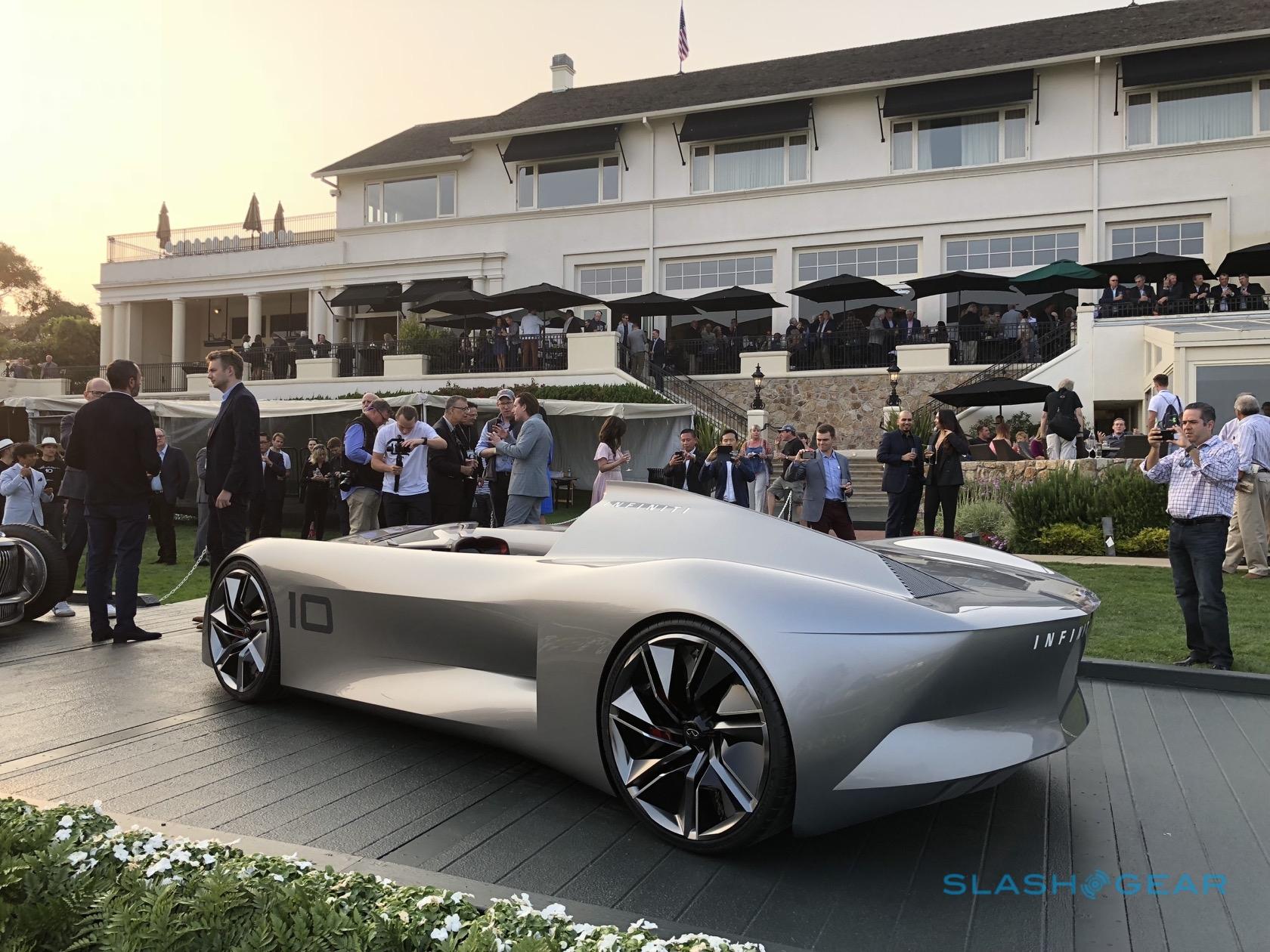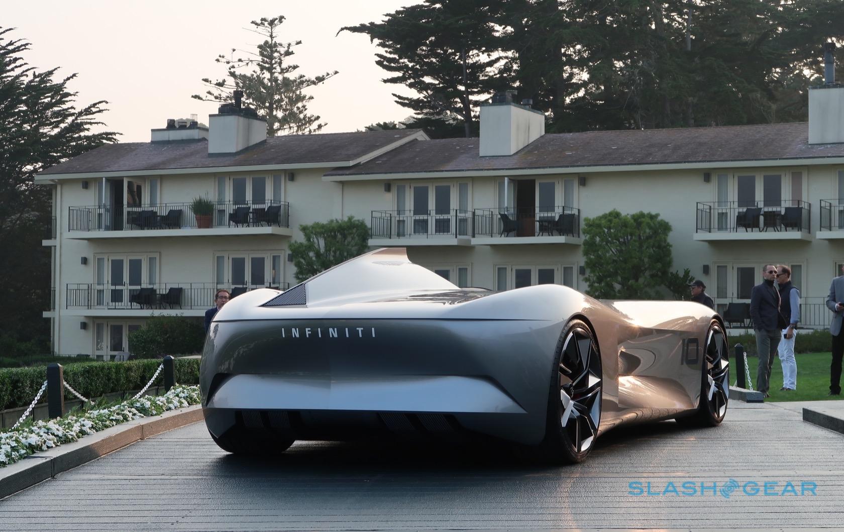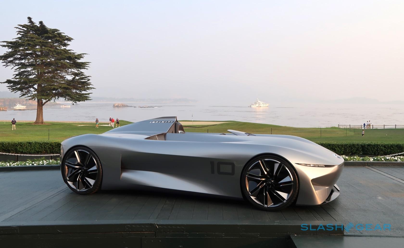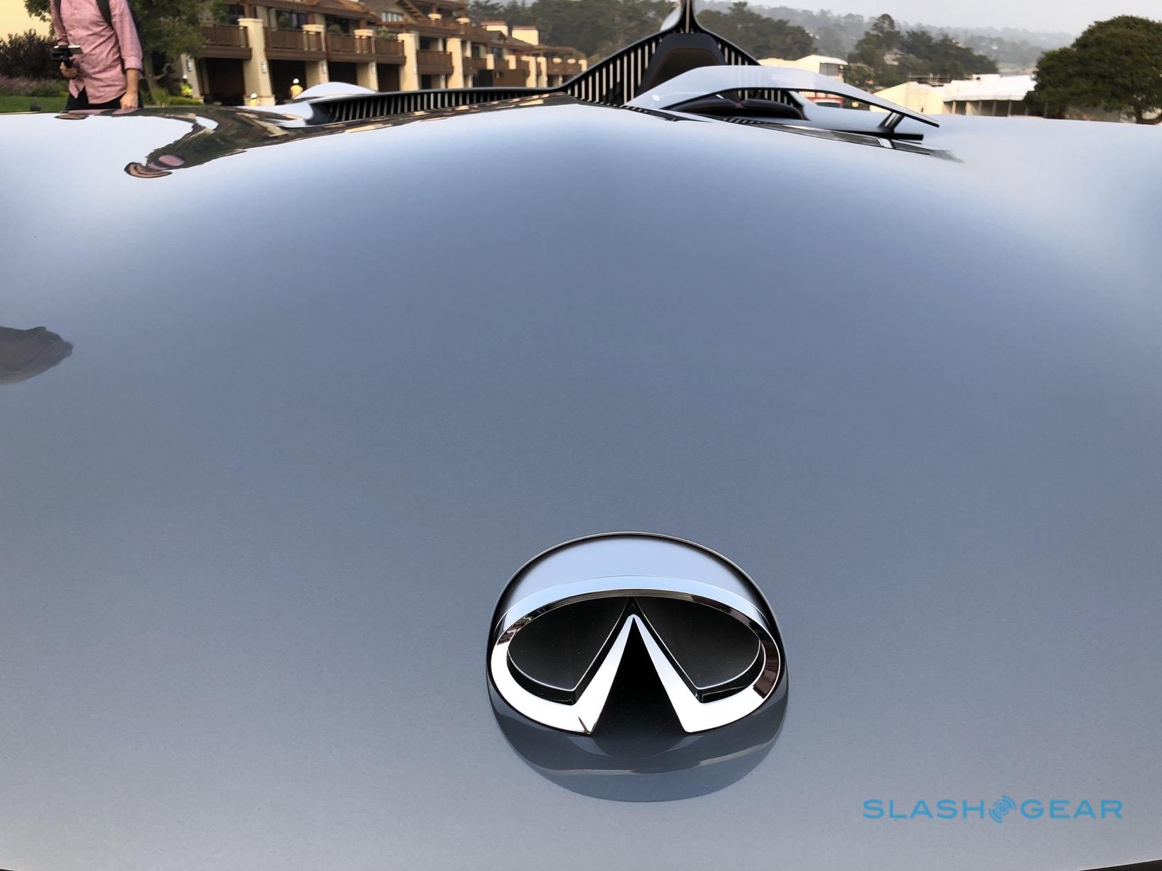 Meanwhile, illumination not only of the headlamps but of the Infiniti logo, the grille surround, and the badge – something Infiniti previewed earlier in the year with the Infiniti Prototype 10, shown above – should help differentiate the EV from other models in the automaker's range. Whether all that – and the camera-based side mirrors, which would undoubtedly fall foul of US safety regulations, sadly – will make it to whatever production car this concept spawns is unclear.