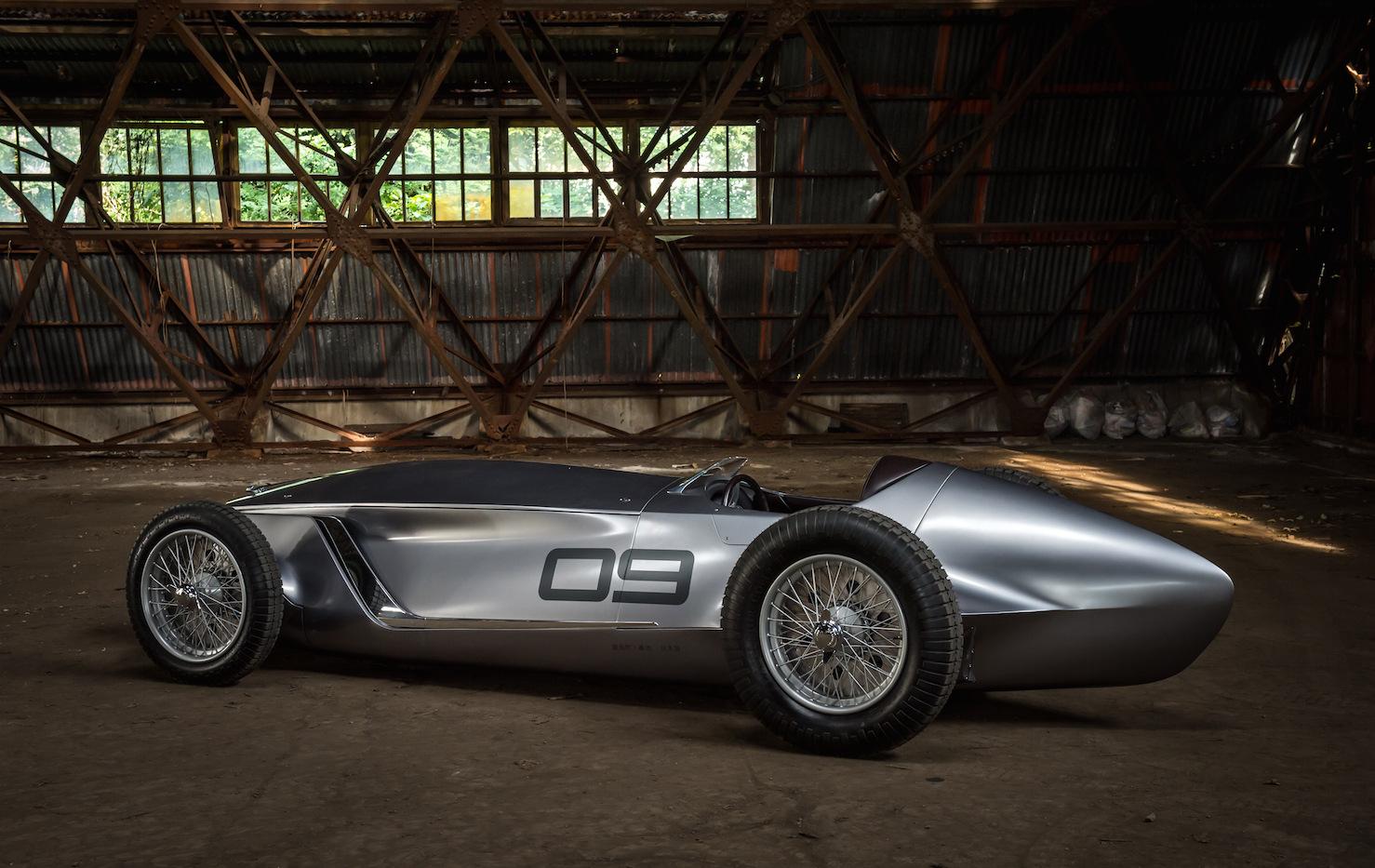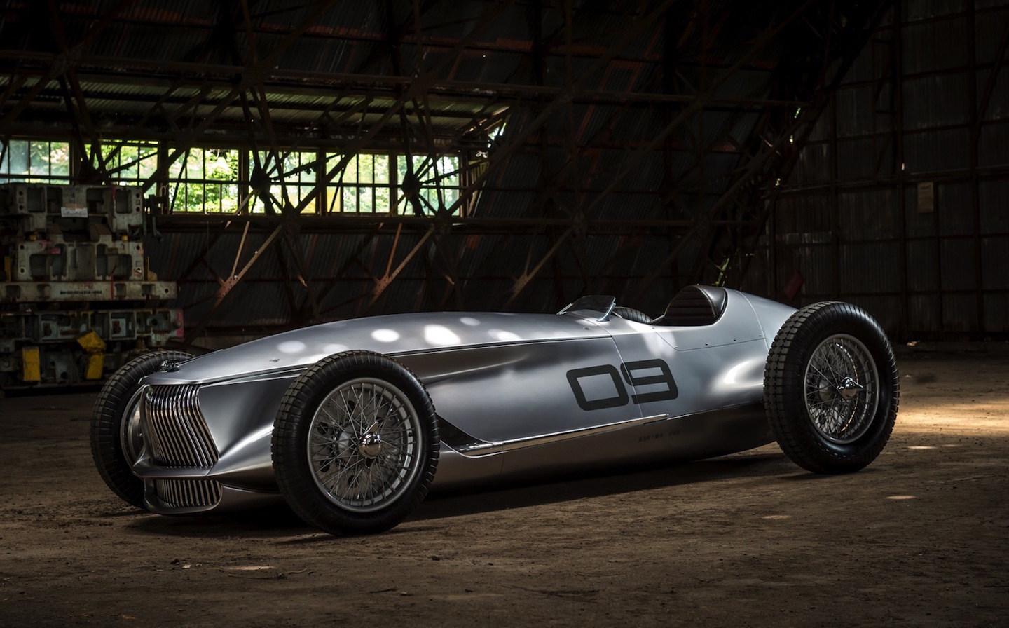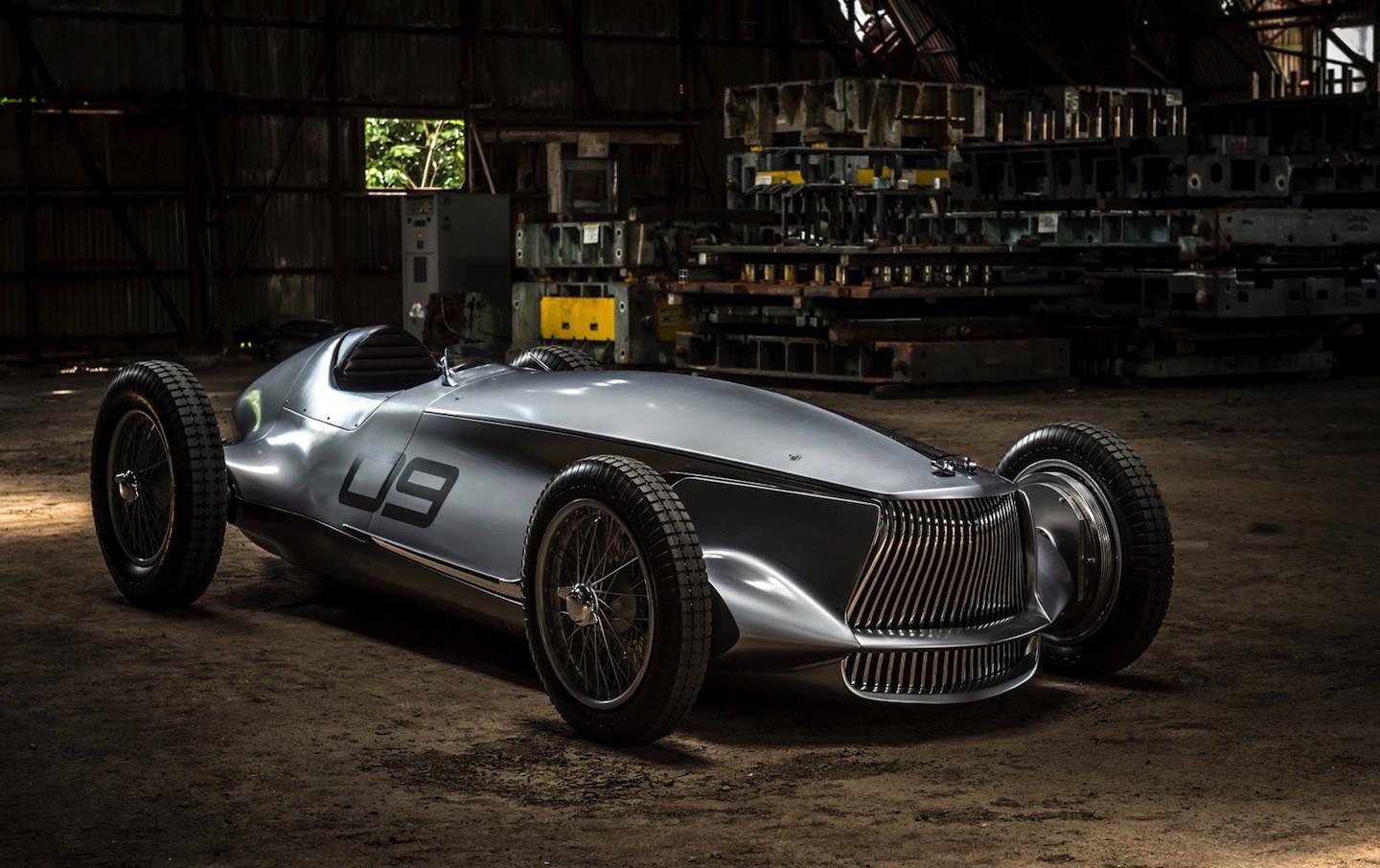 The gorgeous vehicle you're seeing here is Infiniti's new Prototype 9, but it's more than just a flashy concept that borrows the design of 1930s Grand Prix race cars; it's also a fully functioning electric car. Ok, so it's not much more than the combination of those two things: a fancy design experiment that Nissan's luxury brand is showing off at the Pebble Beach Concours d'Elegance car show. But everything from the long nose to the spoked wheels is just wonderful to look at.