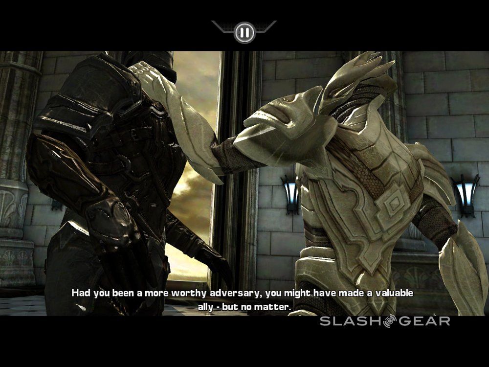 This game fires up to show several brand names that spell out "this is going to be amazing almost no matter what." EPIC Games, UDK, ChAIR, and the mother of them all, UNREAL Technology. We've just reviewed a couple of games for the Motorola XOOM that had UNREAL involved, and oh my goodness let me tell you that we've essentially now GOT to crack our claws out for any new game that comes along associated with them. They're good.