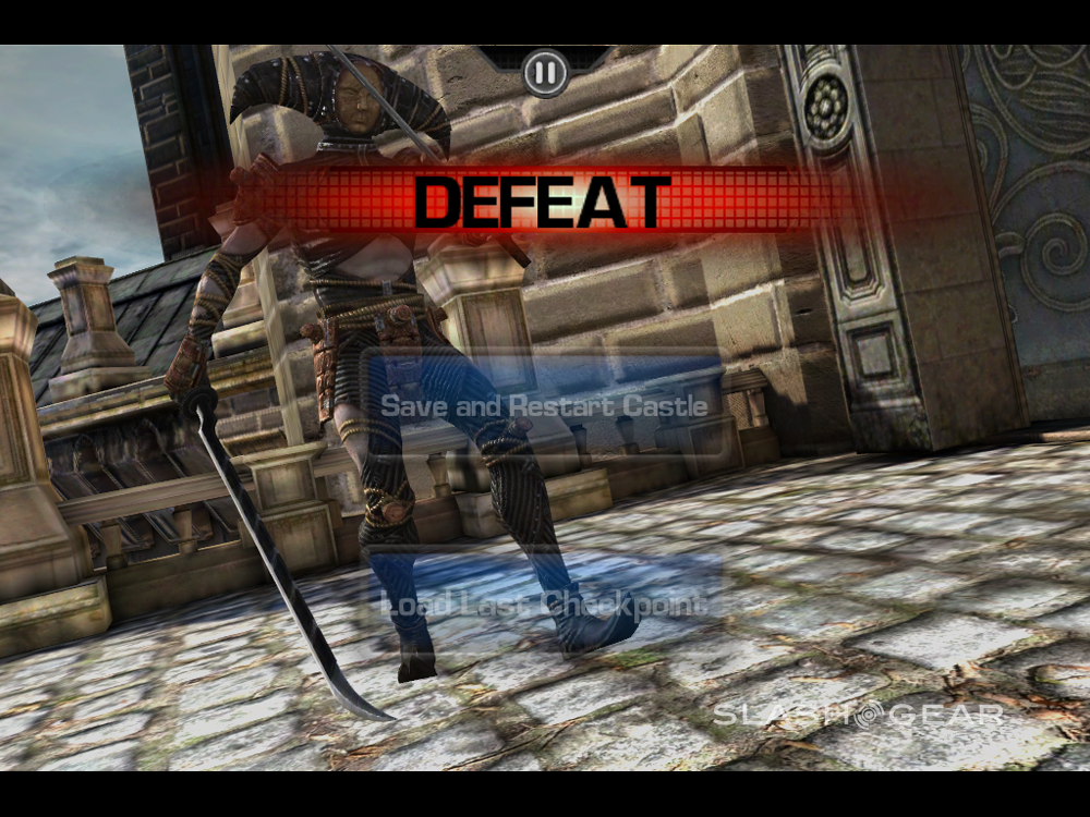 As this game fires up, it rolls past the start screen, hitting almost immediately the playing of the game via just a tiny bit of training. A mistake many games have been making in this transitional period with mobile gaming is to move a game that was on a console or otherwise larger system here to mobile without changing it a bit. You've got to make it work FASTER, because that's what a mobile gamer not only expects, it's what he or she needs. This game knows that, and it knows it hardcore.