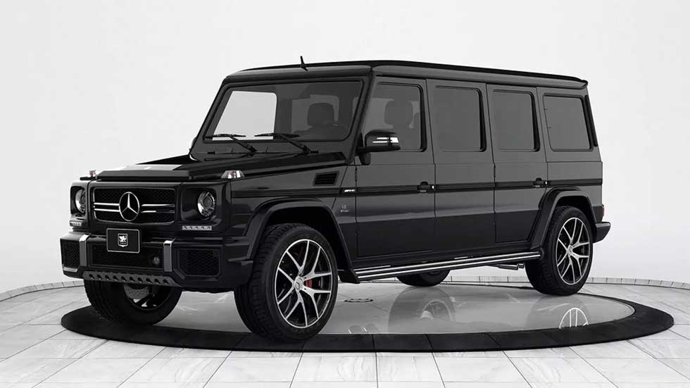 A company called Inkas has a gigantic Mercedes-Benz G63 AMD stretch limo that is the pinnacle of luxury and security. The massive limo has bulletproof armor that can survive rounds fired from machine guns. The wheelbase of the limo is stretched enough to make plenty of room for luxury normally reserved for the home.