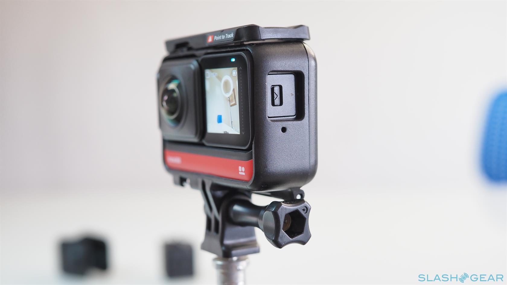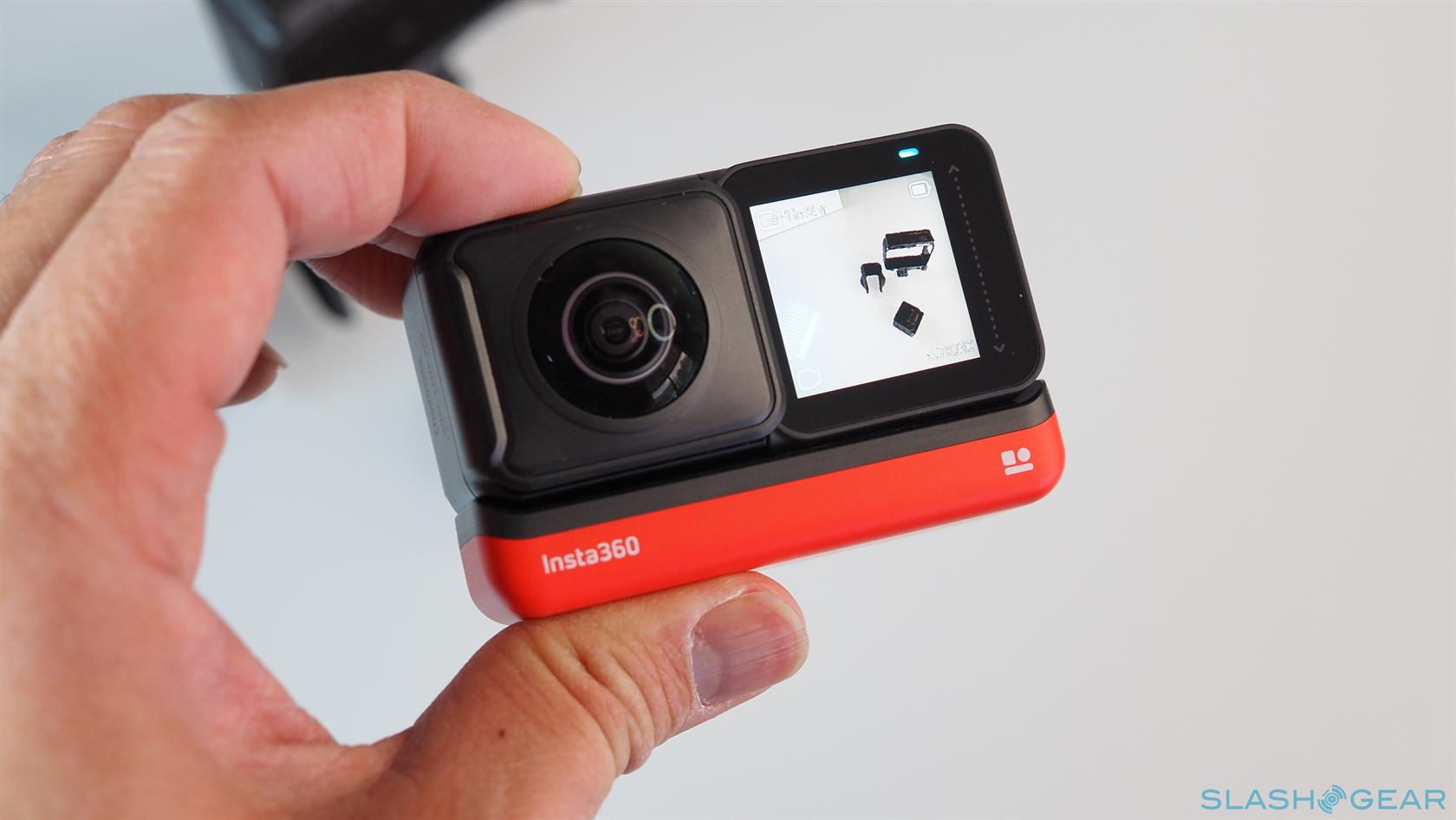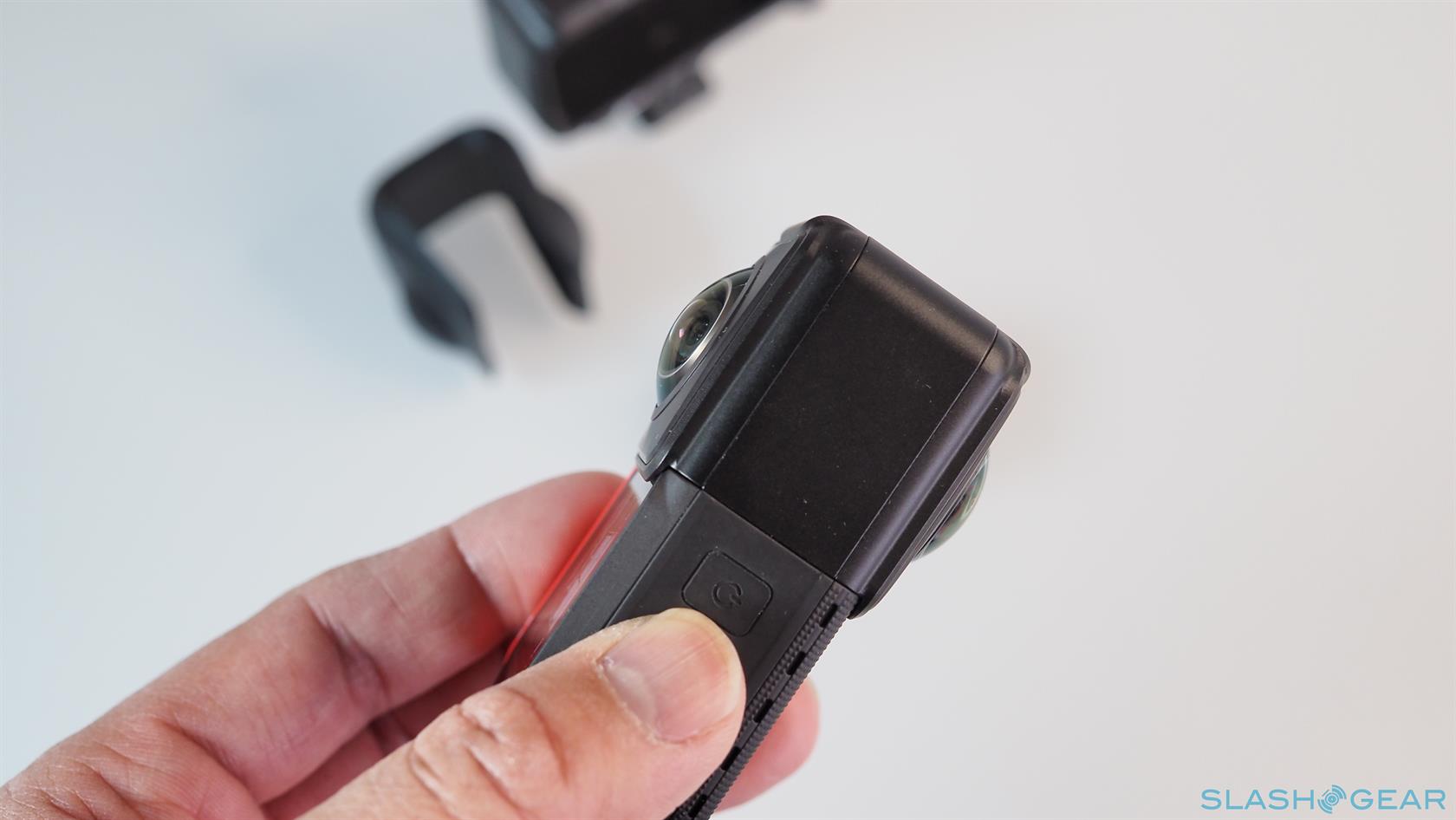 The Insta360 ONE R doesn't actually have all those features in a single body. In fact, the ONE R technically doesn't have a camera at all or even a battery. The small black box that makes up the core of the setup houses the electronics for processing images and videos while the red base serves as the power source. The Core, however, only takes up half of the battery base and leaves the other half for the quick-switch lens mods that complete the formula.