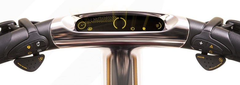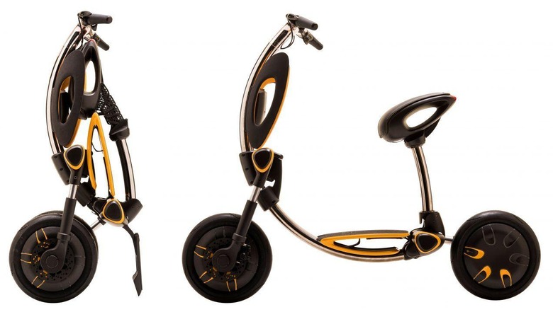 So, the aluminum alloy frame curves sinuously rather than looking like leftover scaffolding poles, the seat is covered in leather, and the whole thing is a riot of merging arcs. The folding mechanism is controlled remotely – either by the app, or a voice or hand gesture – while the electronics are integrated into the frame rather than wires sprouting all over. It's the handiwork of Ori Yemini, a former Pininfarina designer.