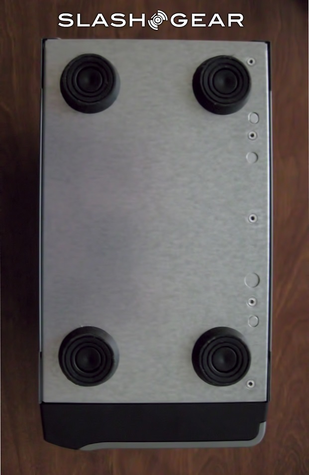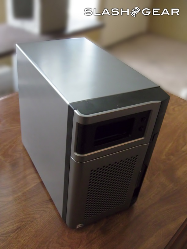 Upon picking up the px2-300d, the first thing you notice is that it feels durable; so durable, in fact, I imagine it could take a swift kick and come out of the attack unaffected. The body is constructed from sheet metal, while the faceplate and hard-drive cover are constructed from matte plastic. The back of the unit is solid metal, as is the bottom, which is adorned with four large rubber feet. Overall, the px2 feels like a battle tank of a device, more than durable enough to handle being placed in a potentially precarious location, such as under a desk or atop a busy work surface.