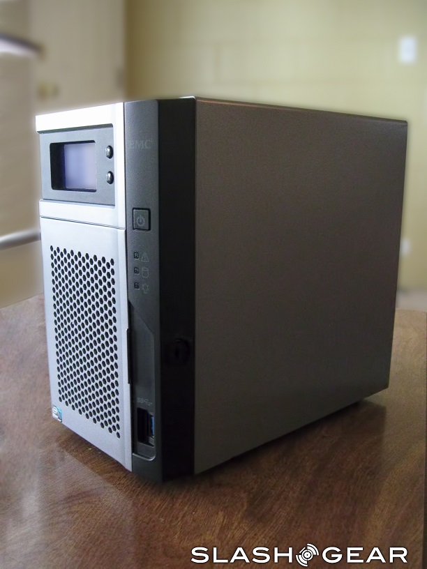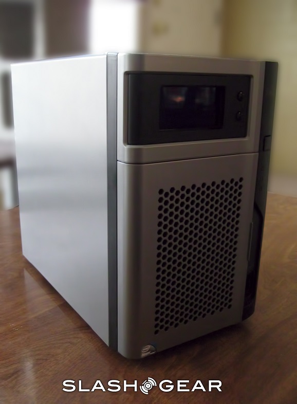 The unit measures 8.91-inches x 4.97-inches x 8.18-inches, and weighs in at almost 9lbs with both hard-drives in place. The NAS is a two-bay unit, with both hot swappable hard-drives housed behind a grated door. You can lock the door, but you cannot lock the individual drives in place; this is rather disappointing, as the door is flimsy, and offers little protection from someone with a sturdy prying tool and ill intent. The hard-drives are server class, while the drive carrier supports both 3.5-inch and 2.5-inch drives.