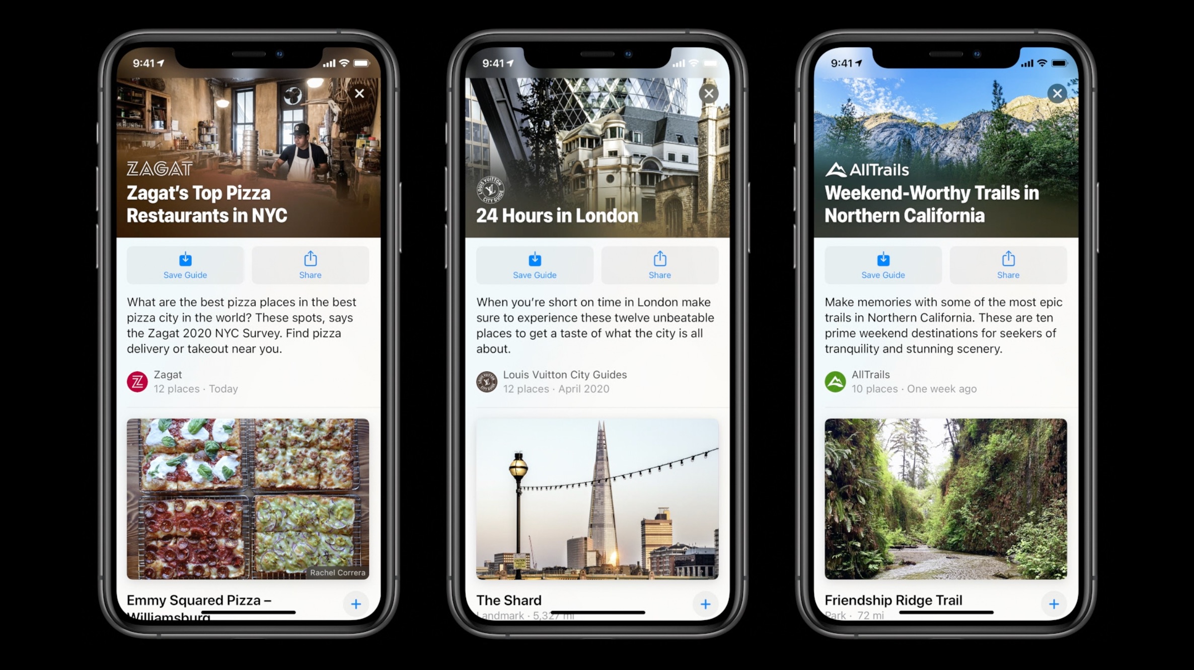 A new feature in Apple Maps, the Guides will see Apple pull in data on cities and other locations from third party services. They'll be much like physical guidebooks to cities, but digital, with all the benefits that brings. For example, they'll be automatically updated as new content is available.