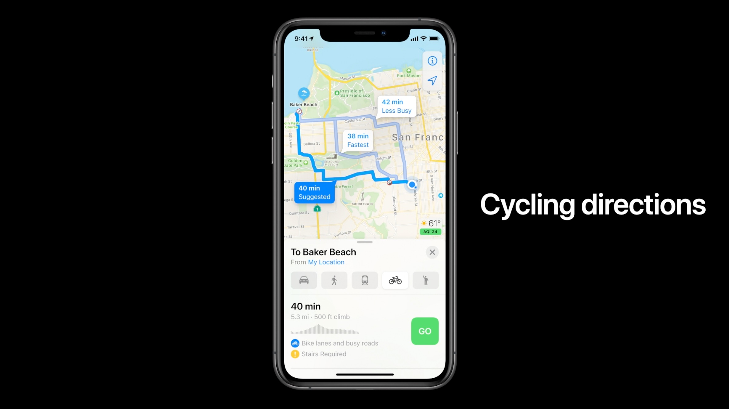 Apple's most-requested feature, according to the company, the new cyclist navigation feature is being added in Apple Maps in iOS 14. As you'd expect, it's more than just car directions but recalculated for cyclists.