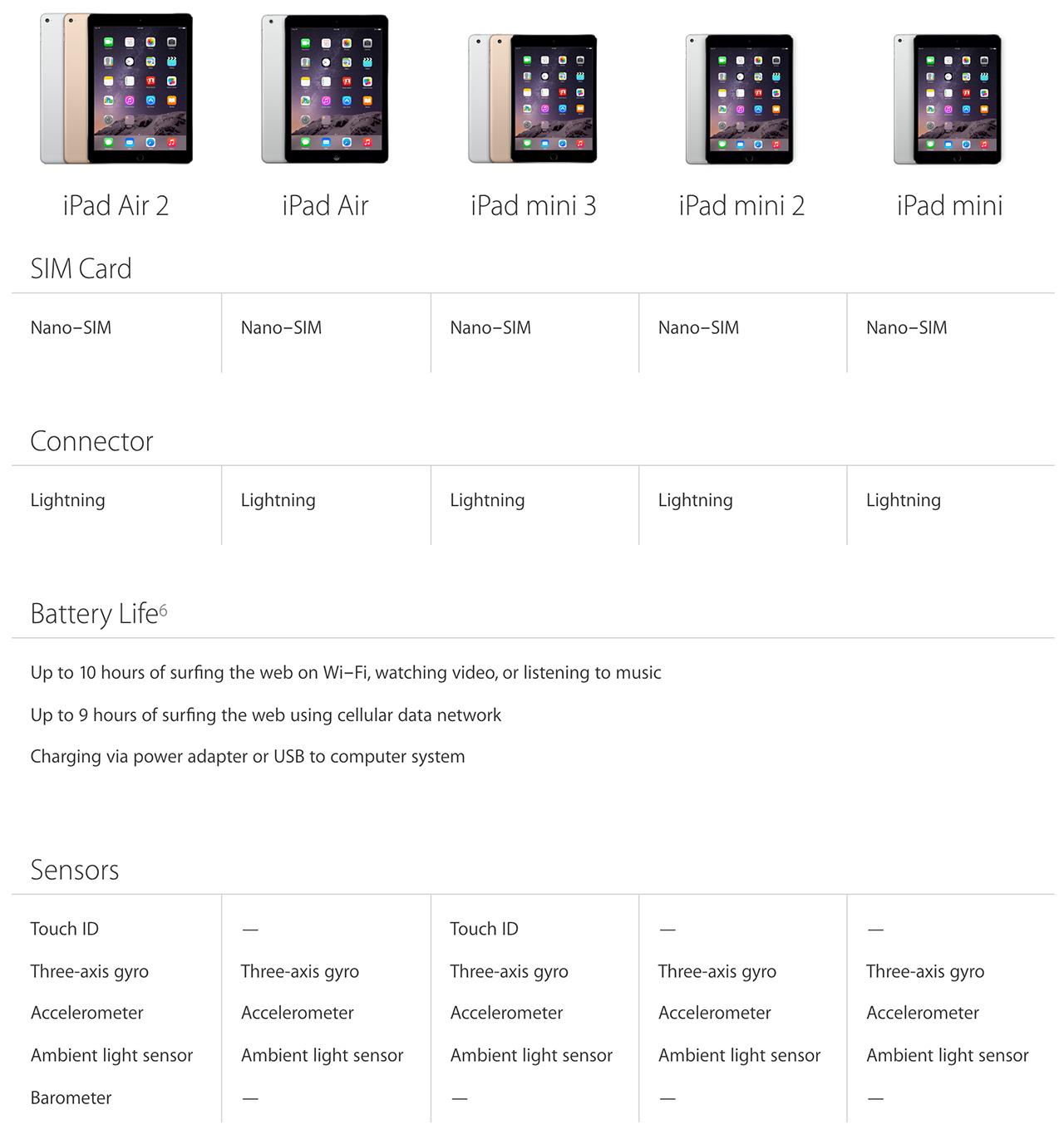 Below you'll find a gallery of features with which Apple has compared the iPad Air with the iPad mini, with each model separated in line, most powerful to least.