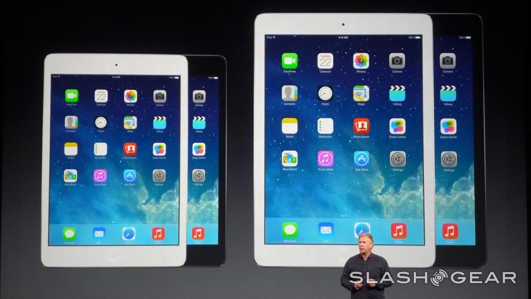 This machine will be working with a body that's 7.5mm thin, 20 percent thinner than the previous model. It'll also be working with a bezel that – to be exact – is 43 percent thinner than the previous model. The whole unit weighs in at one pound. This machine also works with another A7 chip, the same (or slightly modified from) the one in the iPhone 5s.