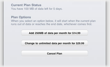 Meanwhile Apple have thrown up some screenshots of the 3G management system by which owners of the iPad WiFi + 3G models will be able to control their mobile data usage. As well as being able to sign up and cancel on-device, there'll also be a running total – useful for those on the 250MB package ($14.99 per month) – and the ability to switch between that and the unlimited data package ($29.99) or add a one-off 250MB boost ($14.99). It's also been made clear that you can sign up and cancel as often as you like.