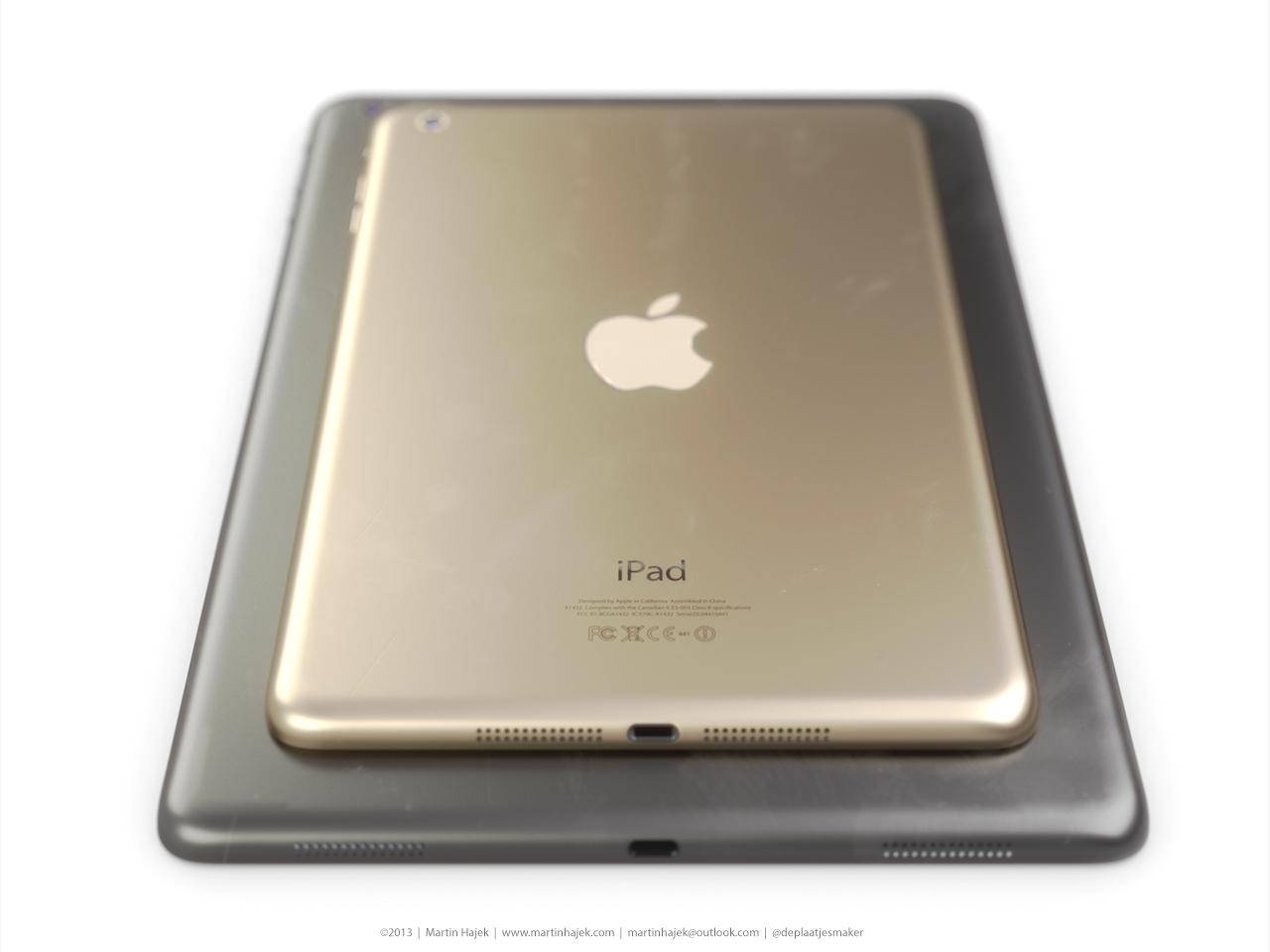 Also below you'll find a small gallery of renderings – aka made in a 3D rendering application – of the gold iPad mini aside the iPad 5. These are illustrations from Martin Hajek, a fellow that's also been notoriously accurate in predicting the outcome of final models for Apple mobile devices in the past.