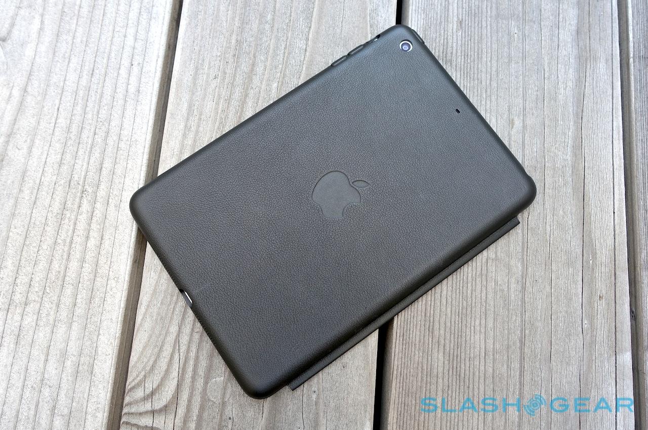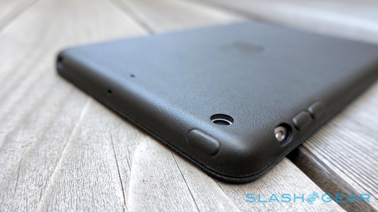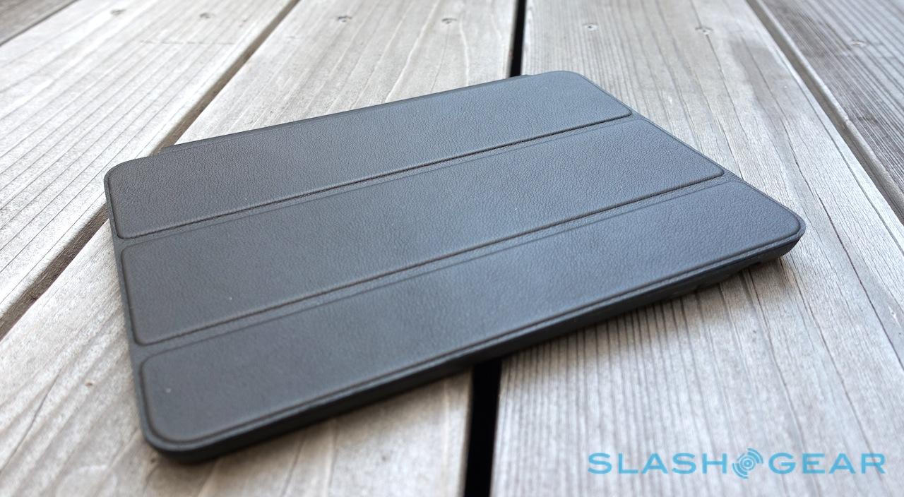 It's available in black, blue, pink, brown, and red, each made from leather, and they feel great. They also add a little bulk to the iPad mini 3, noticeable more so from the way the hinge extends into your palm than from the extra thickness. Personally, I've carried two generations of iPad mini with nothing more than a Smart Cover in my bag, and the scratches are minimal.