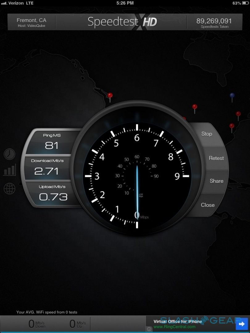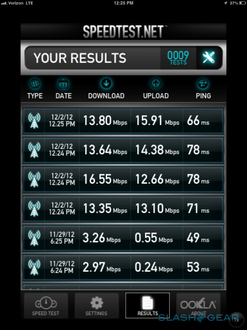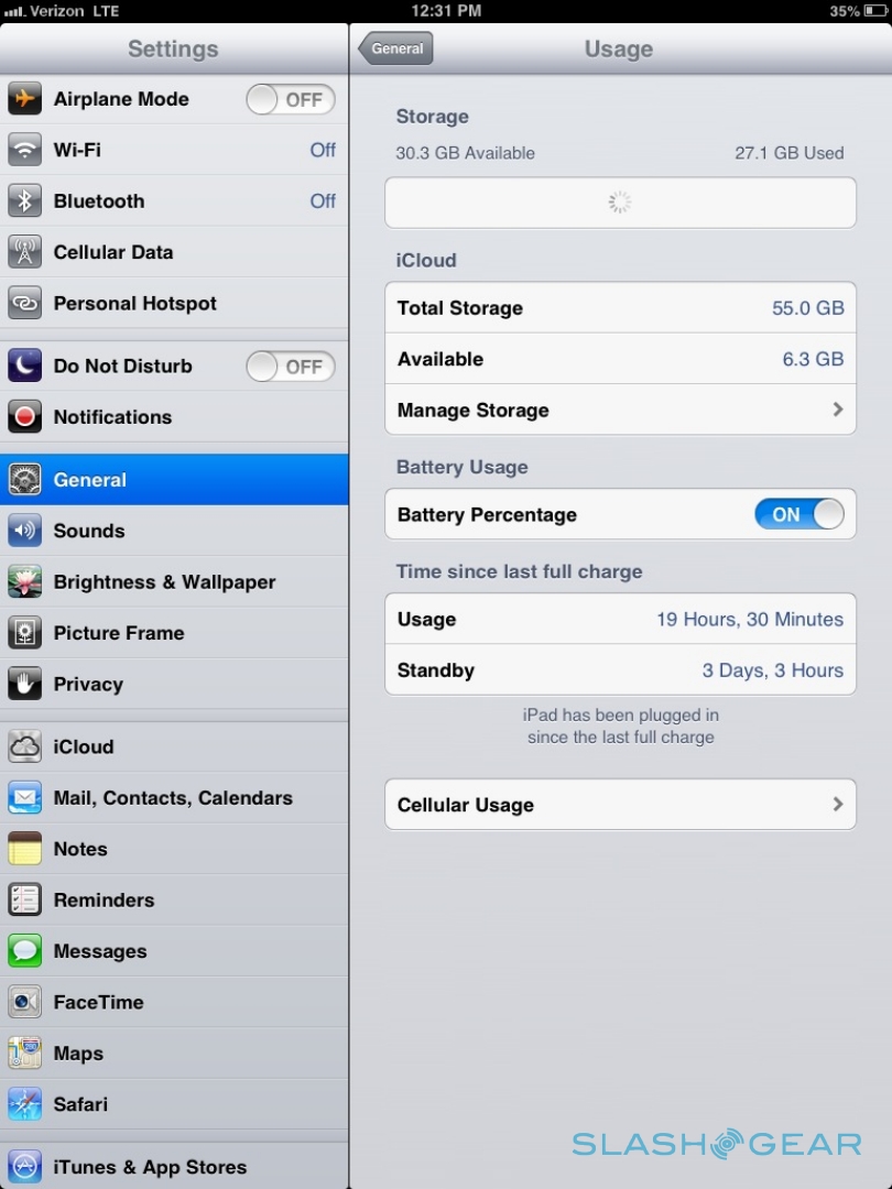 With realistic usage – a mixture of browsing, video playback, emailing, messaging, music playback (both streamed and local), ebook reading, and some FaceTime – on a combination of WiFi and LTE, the iPad mini reached an incredible 19.5 hours (of active usage; 3 days, 3 hours standby) with 35-percent still on the gage. With the display off and mobile hotspot mode in use, we exceeded twenty hours, far in excess of the roughly 3-4 hours a typical hotspot would give you.