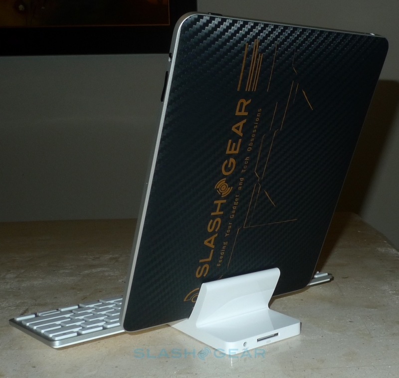 Still to come, of course, are Apple's iPad Camera Connection Kit ($29) – a pair of adapters, one with an SD reader, the other with a USB port, that plug either directly into the iPad's Dock Connector or into one of the desktop docks – and iPad Dock Connector to VGA Adapter ($29), the latter being perhaps one of the more useful iPad accessories if you want to use your tablet for proper work. We can imagine pairing it with the iPad Keyboard Dock, for instance – plugging it into the secondary Dock Connector on the back of the other accessory – to create a mini-office of sorts. Of course, if you're out without your Dock or Keyboard Dock, you'll have to use a Bluetooth keyboard with the iPad, or work using the onscreen 'board. It's also worth remembering that the adapter only supports up to 1024 x 768 resolution, a little more than a netbook.
