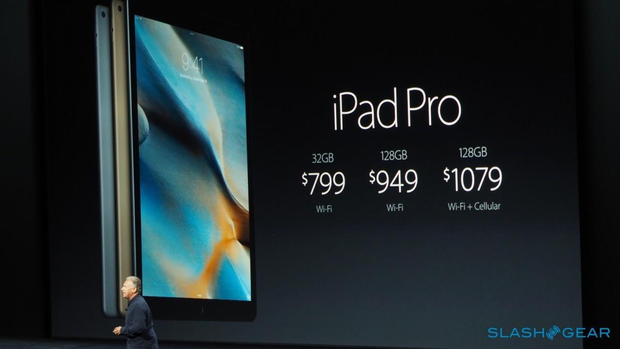 The iPad Pro 32GB edition with wi-fi only will cost $799 USD. The 128GB edition with wi-fi only will cost you $949 USD. The biggest version also has 128GB internal storage with Cellular connectivity in addition to wi-fi and will cost $1079 USD.