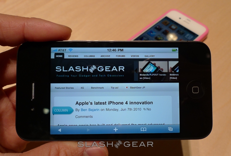 Slimmer, brighter, more powerful and apparently the product of 18 months development: the Apple iPhone 4 certainly is something. The WWDC 2010 opening keynote is over, and we've just been back to check out the new Apple smartphone. Set to debut on June 24th – and up for preorder from June 15th – the Jobs hyperbole and press shots don't do the iPhone 4 justice in your hand. Whether you're an Apple fan or not, you have to give them credit for creating a very slick device.More first impressions and hands-on gallery and videos after the cut
