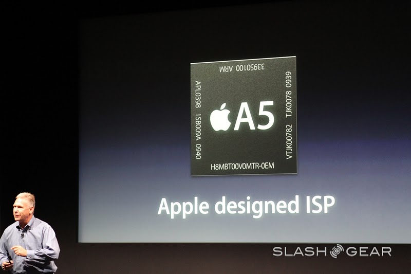 We've previously looked at this game on the iPad but it seemed much too large to be working on the tiny iPhone – looks like we were wrong. This game will be out on December 1st for all you holiday shoppers. Once this presentation was done, Apple's Phil Schiller took the stage to re-introduce the A5 chip (you might recognize this chip from the iPad 2, btw). Dual-core processor (they say), up to 2X faster CPU, dual core graphics – and "up to 7x faster graphics." Sounds good to you?