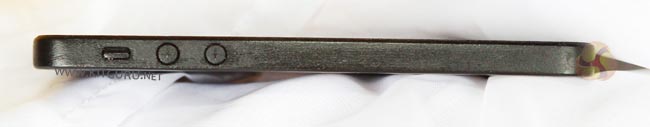 The display on this model appears to be right around 4-inches – compared in the image above to the iPhone 4/4S which looks measly in comparison, and the bottom shows off its brand new couple of features that include not only a couple of speaker grills made of machined holes, but two of what appear to be POGO pin holes as well as a headphone jack.