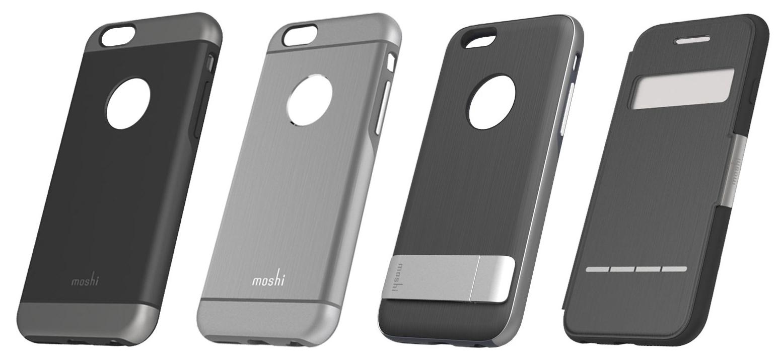 One of our all-time favorite Apple accessory makers, Moshi brings "The 6 Series" to the public with coverage for the iPhone 6 from all angles. iPouch Plus is a microfiber pouch to keep your iPhone's screen free from dust and smears. iGlaze is a slim-fit hardshell case with hybrid TPU / polycarbonate construction, while the iGlaze XT is a transparent hardshell case – both rough and tough.