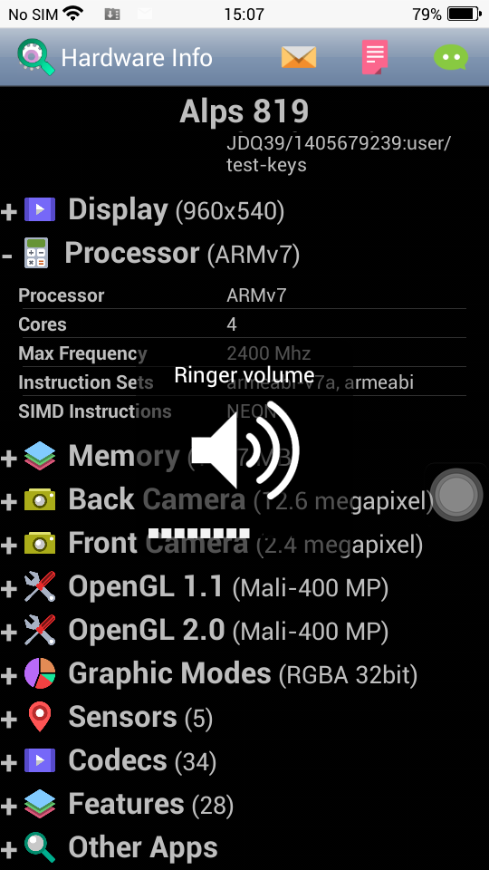 According to Lawrence_Uber_Alles, this device runs Android 4.4.2 (KitKat) with an iPhone skin over the top. Specifications are as follows: