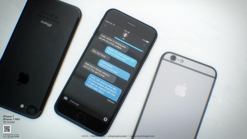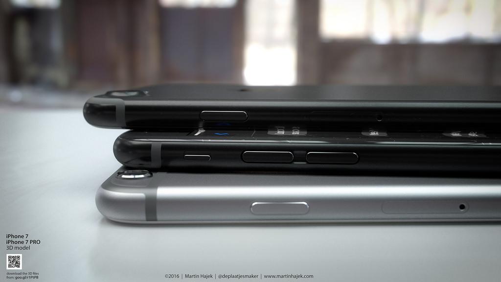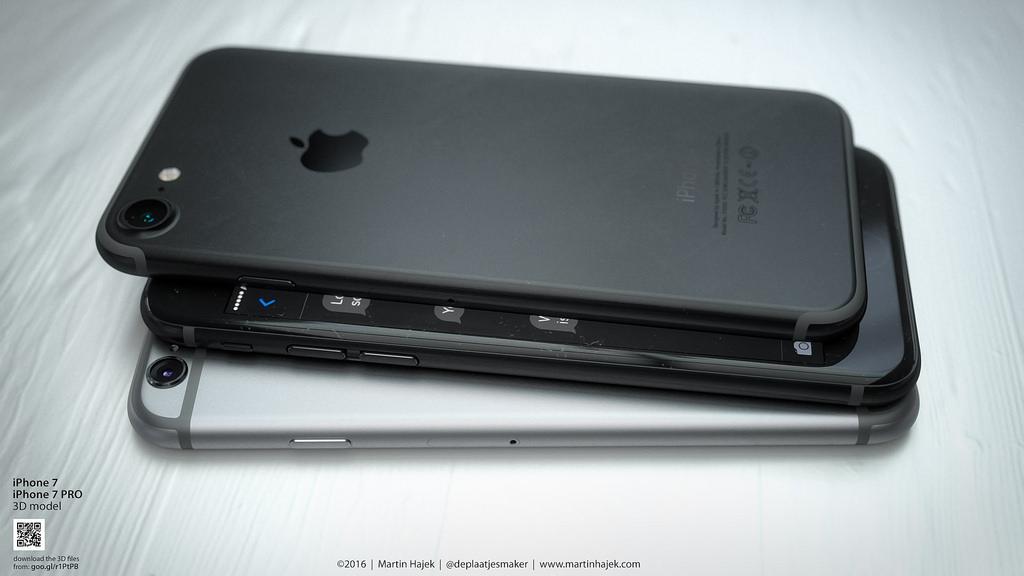 A set of iPhone 7 images have surfaced with the device coming in a deep (matte) black. These images come from Martin Hajek, an extremely skilled illustrator and 3D model-maker. He's known for taking specifications and blueprints from case-makers before the launch of products (especially Apple products) and turning them into 3D models that look so extremely realistic, it's difficult to tell the difference between what's real and what's not. These images show a rendering of the iPhone 7 (as we know it through leaks and rumors today) and the iPhone 6 or 6s.