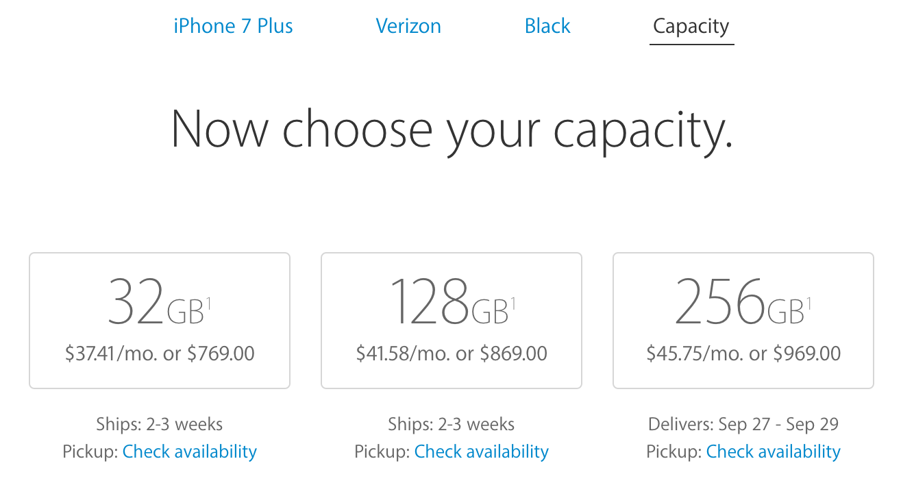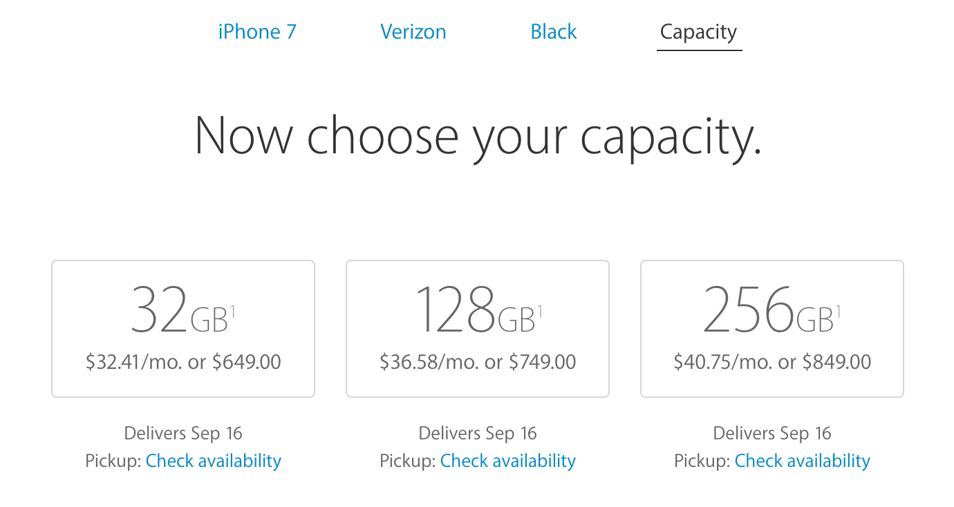 Pricing will be almost identical to last year's iPhone 6s and iPhone 6s Plus release with one or two exceptions.