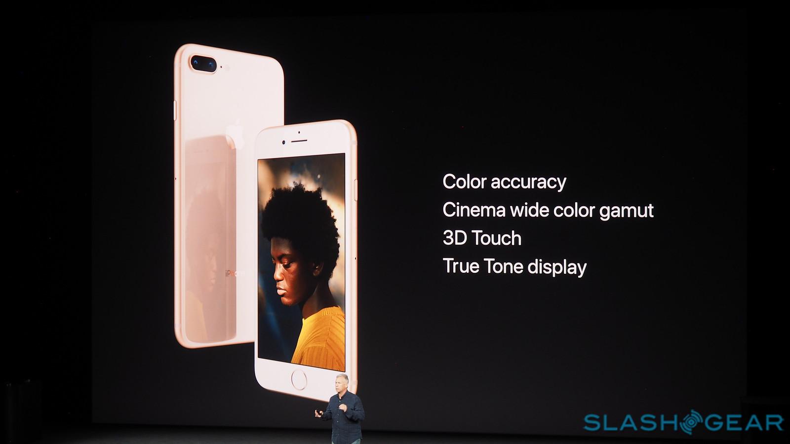 Both the iPhone 8 and iPhone 8 Plus are sealed for water and dust resistance, and both have slightly new displays. Both devices' displays have True Tone technology inside now, able to adjust to ambient light with color and temperature.