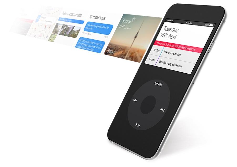 Simply put, Gomboli's iPod Classic concept case works much like the Smart Covers Apple makes for its iPads, except this would fit your iPhone 6 or 6 Plus. The cover features a cut-out window on the top half, similar to what can be found on covers for Samsung's Galaxy smartphones, except this is made to have the iPhone's screen appear as an iPod's did; square and on the top half of the device.
