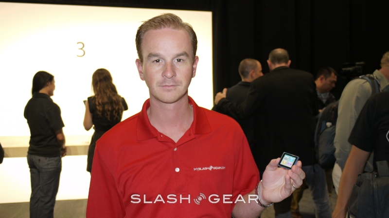 Steve Jobs mentioned just how small the sixth-generation iPod nano is a few times during his keynote, and in the metal it's truly astonishing. The touchscreen is bright and vividly colored, obviously reminiscent of iOS on the iPod touch, but the whole thing buries down into your palm. During music playback the whole screen shows album art, and while there's no video playback support – and you lose the camera of the fifth-gen nano – we've a feeling most people, like us, will prefer the smaller scale and more dedicated focus.