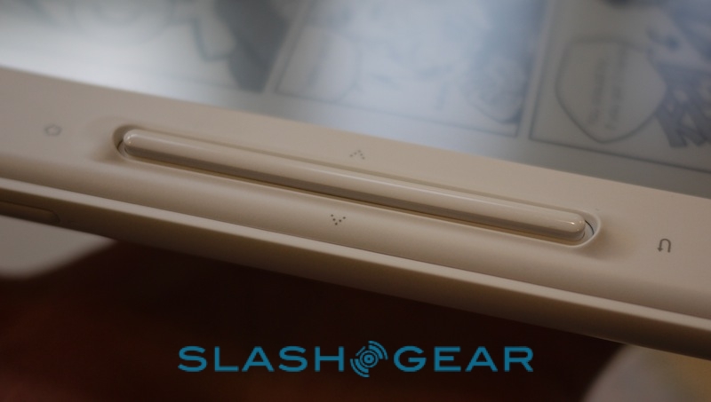 What you do get is a note-taking app that works with the thin pull-out stylus in the top right hand side, a straightforward four-way navigation control (suited to left- or right-handed users, since the Cover Story has an accelerometer for page rotation) and a fast enough processor to make sure the only lag involved is the e-ink's inherent pauses. There's the usual, slightly cutesy UI too, with the added bonus of some swipes and taps thanks to the touchscreen.